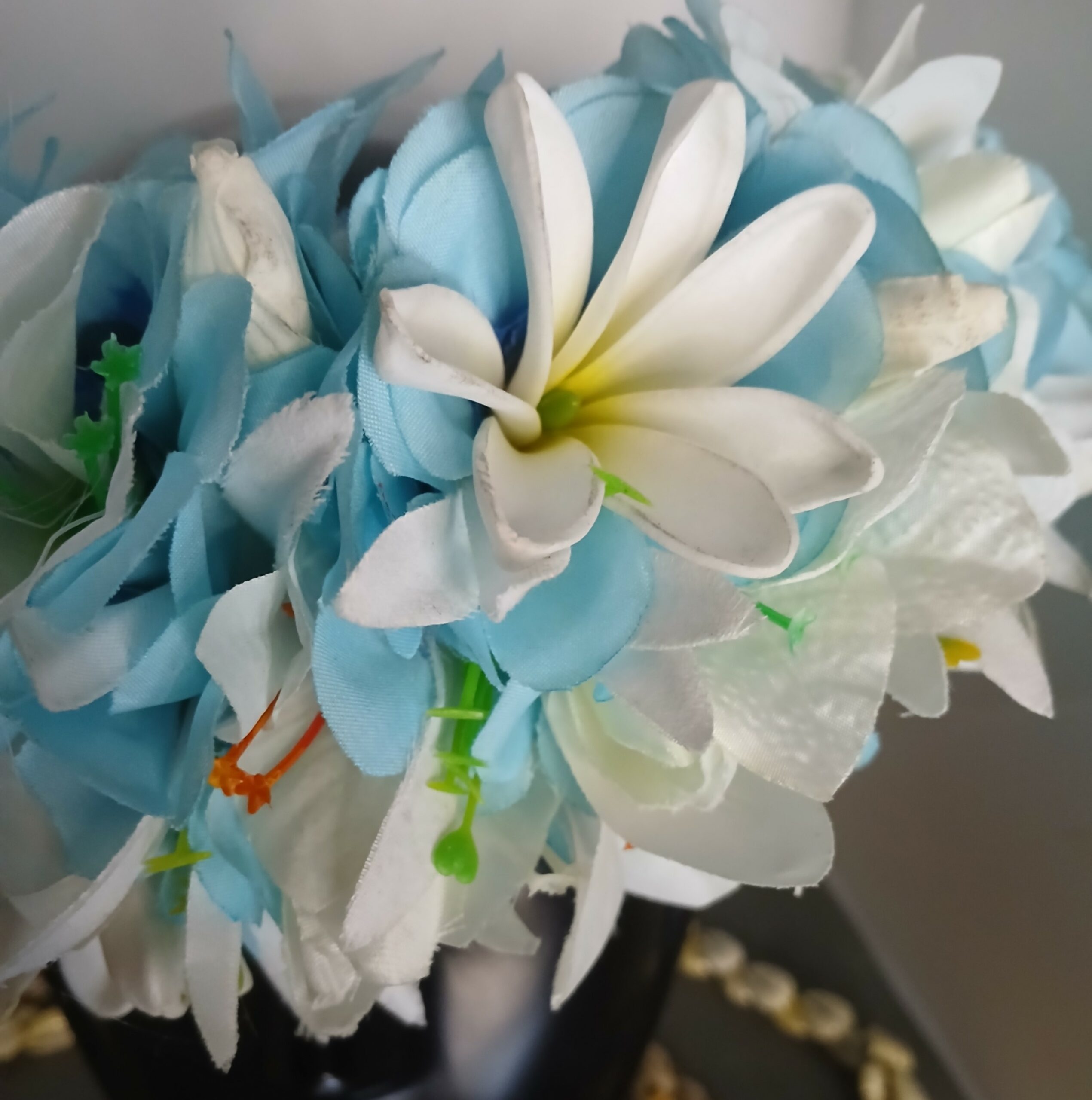 Ainsi composes ta  Couronne de tête artisanale fleurs Tahiti artificielles en fonction des produits en stock pour un service rapide.