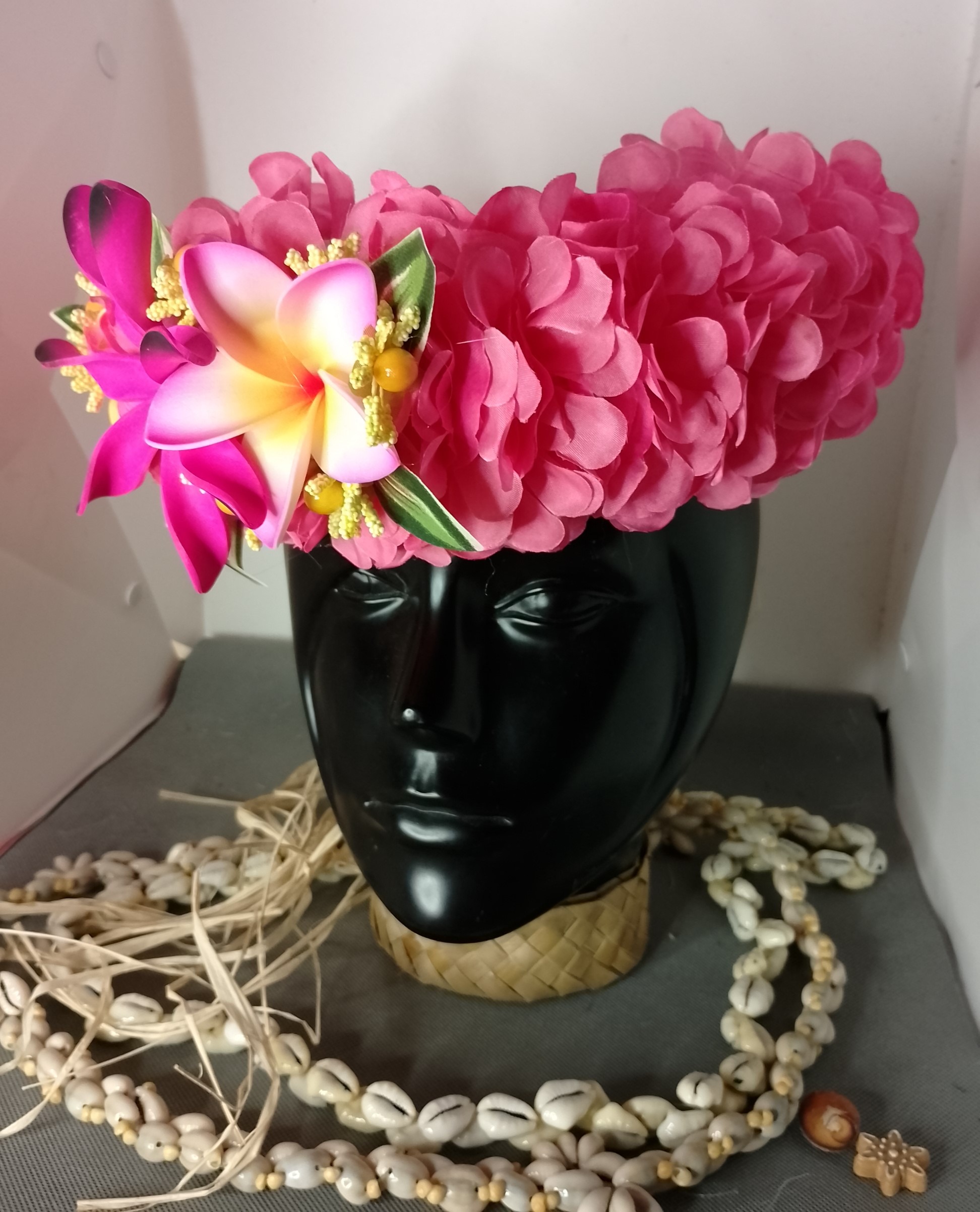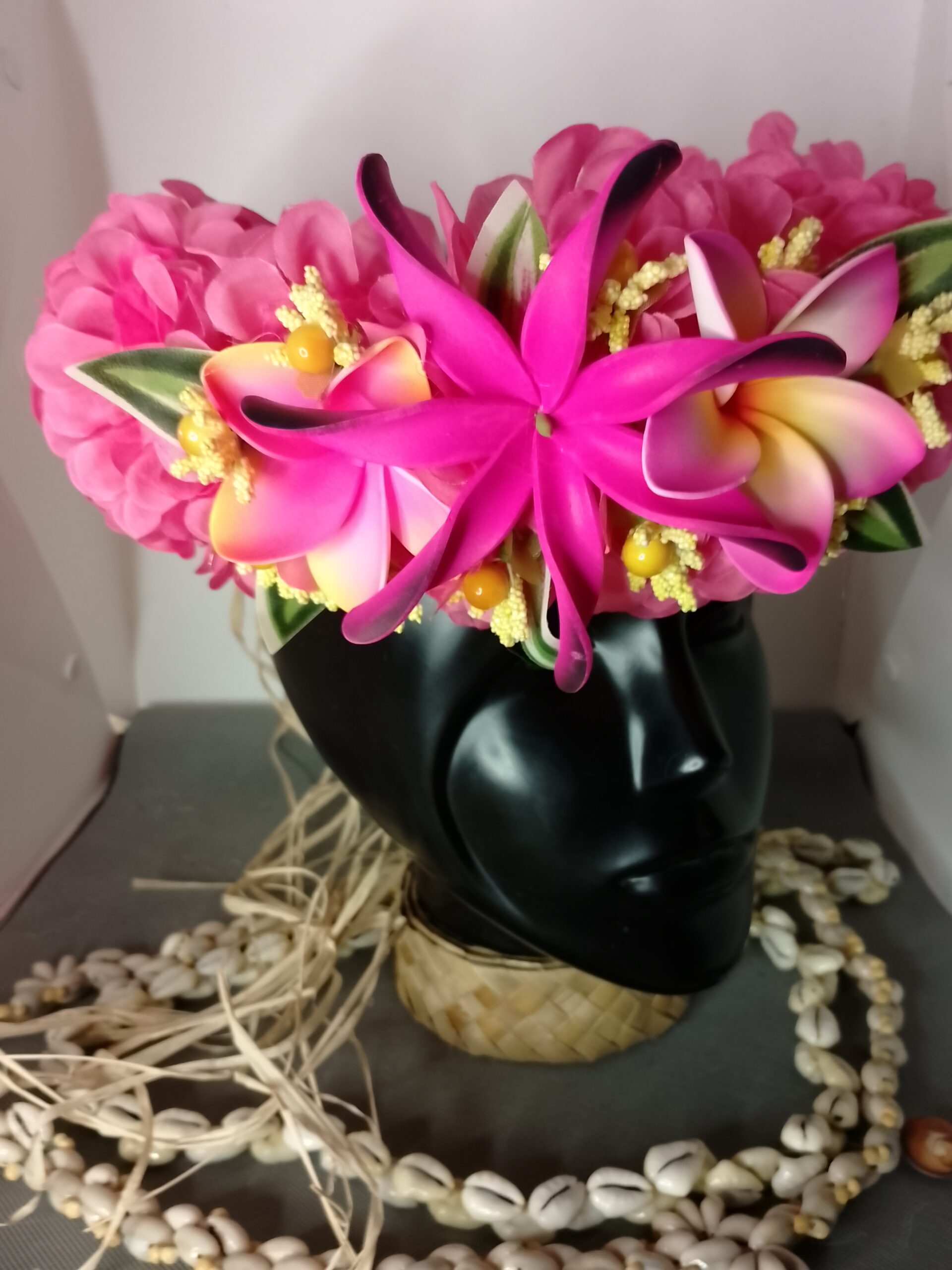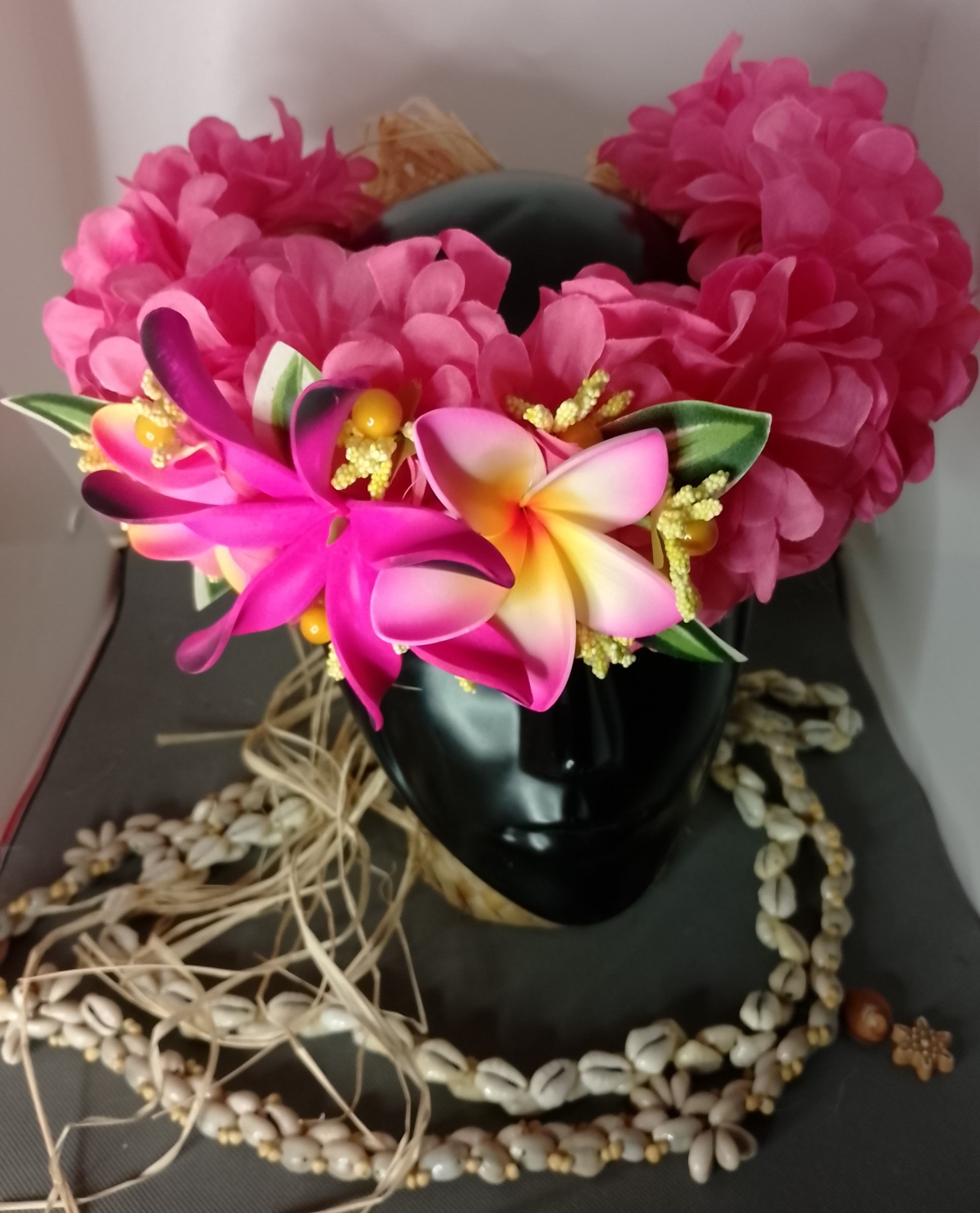 Ainsi composes ta Couronne de tête artisanale fleurs Tahiti artificielles en fonction des produits en stock pour un service rapide.