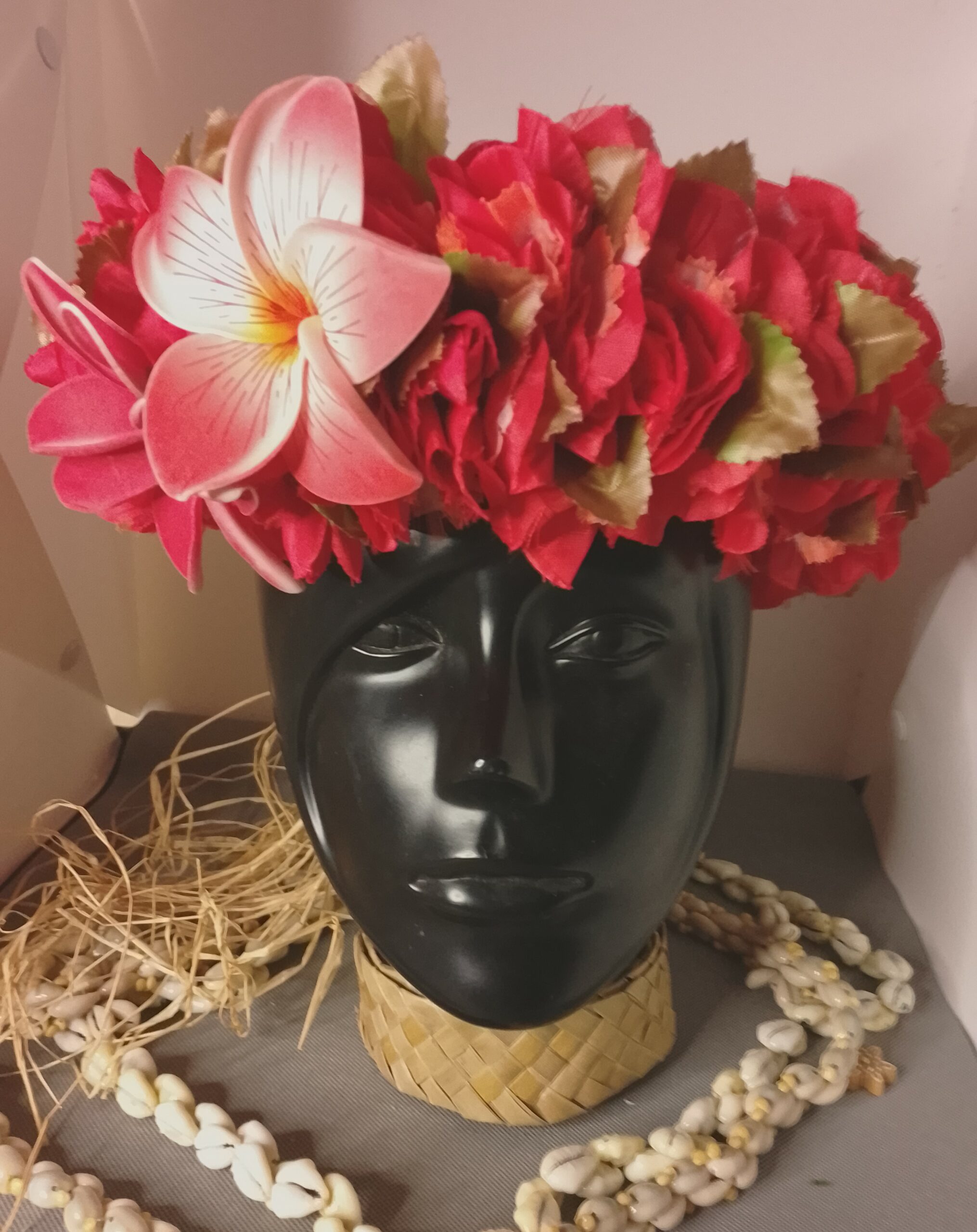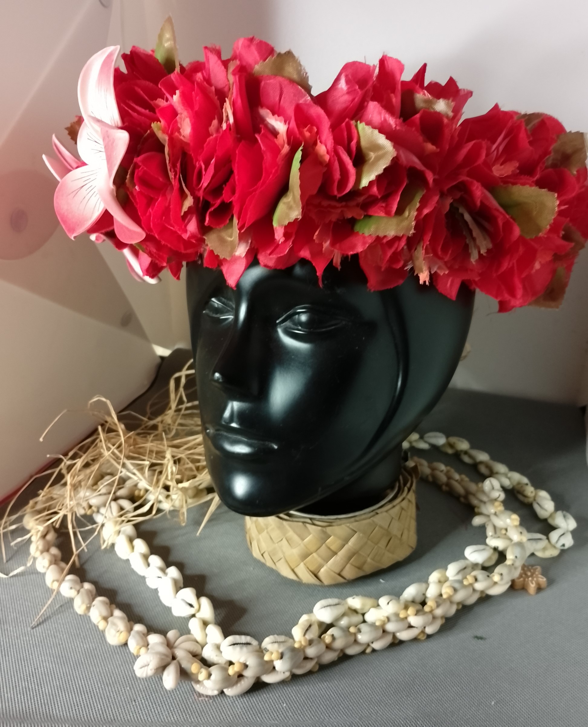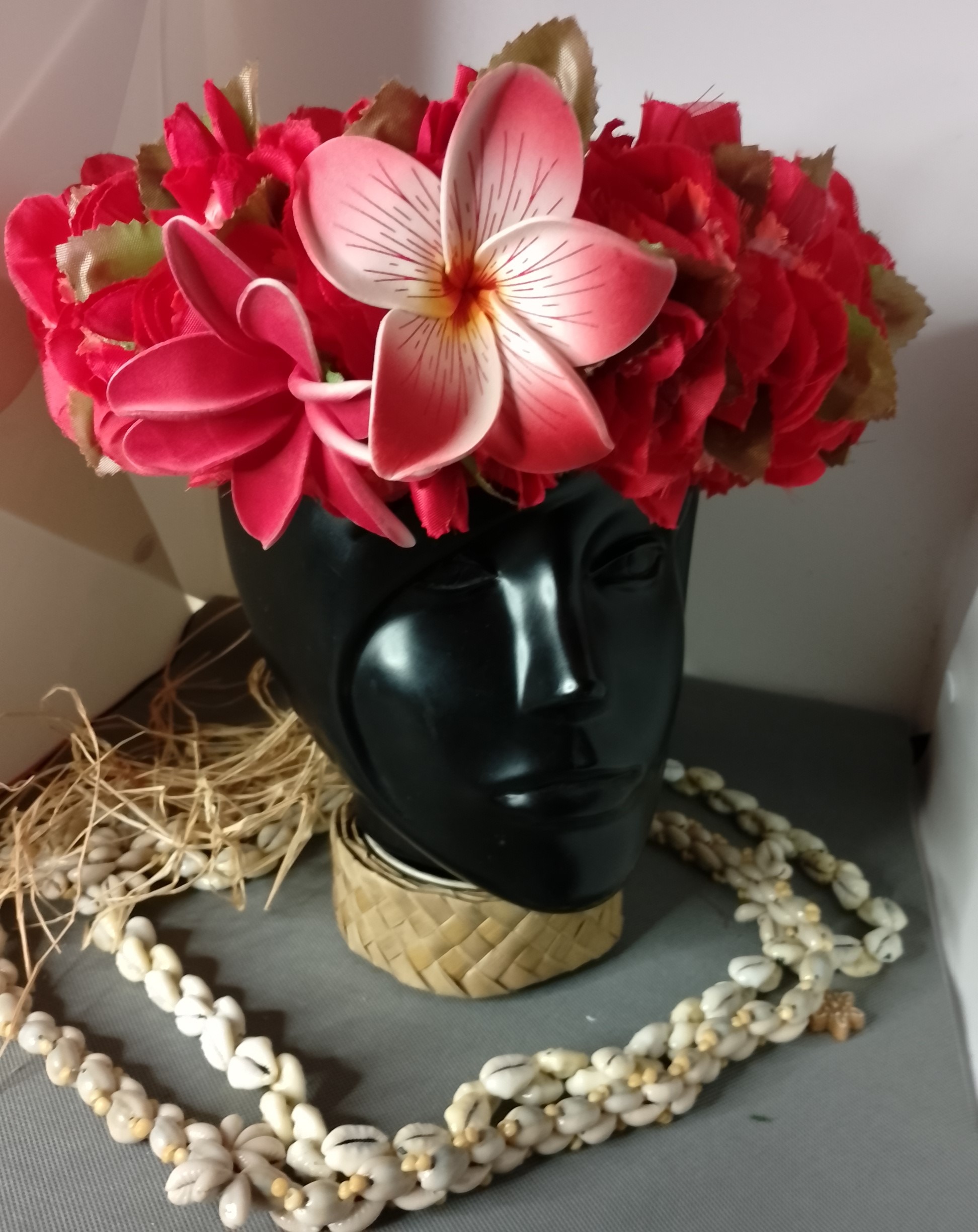 Couronne fleurs Tahiti rouge grande tiare et grand tipanie
