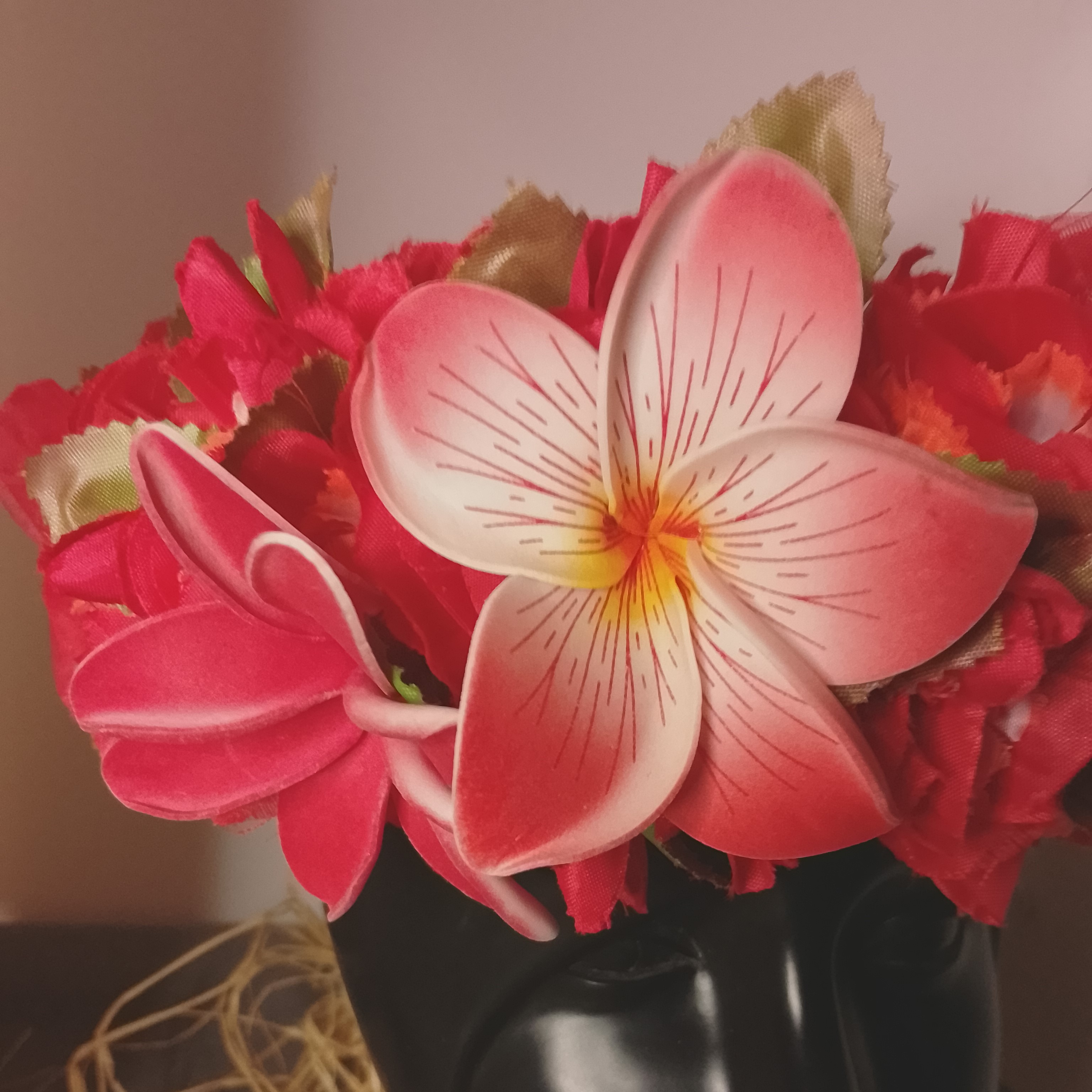 Les composants de la Couronne fleurs Tahiti rouge grande tiare et grand tipanie sont pour :