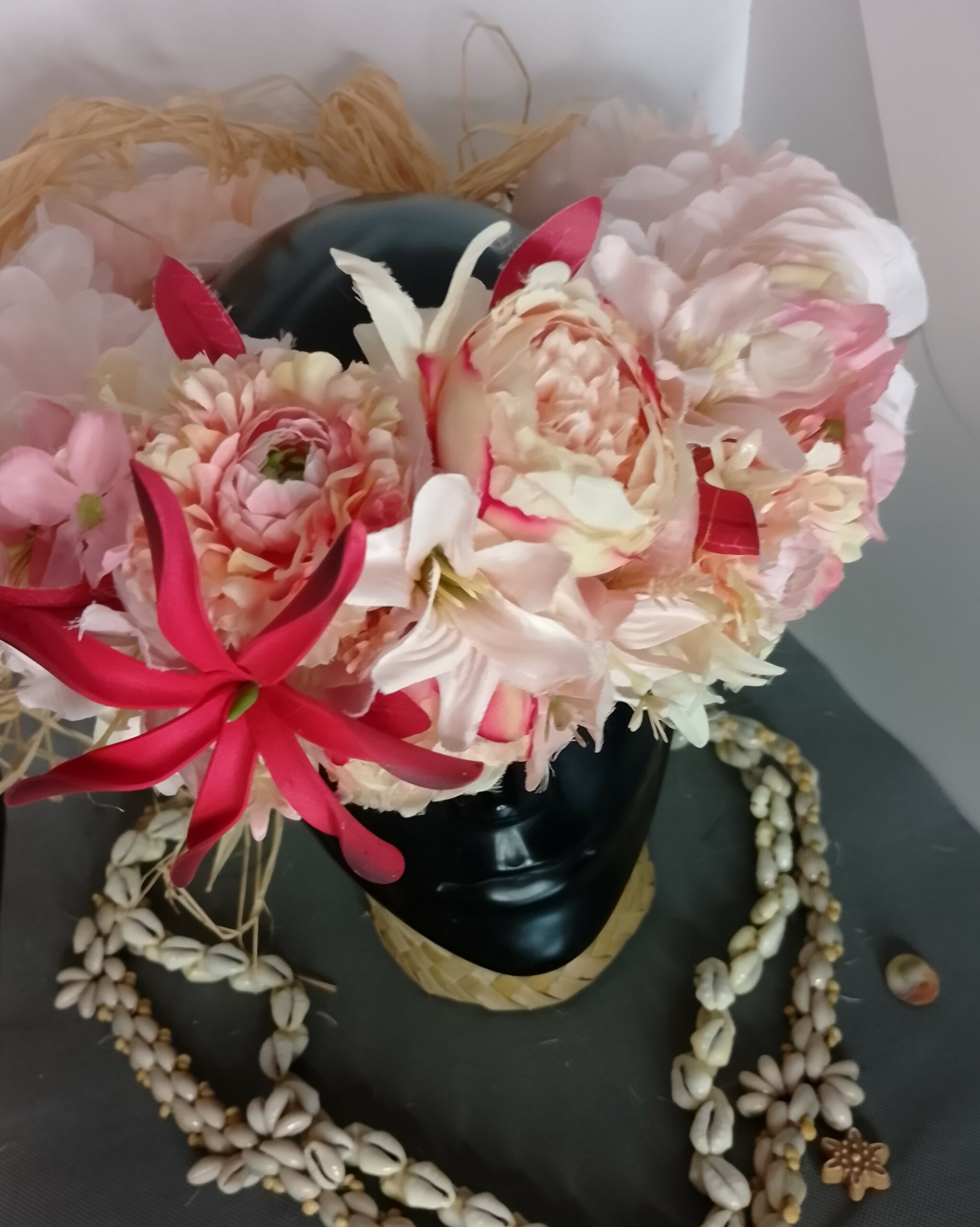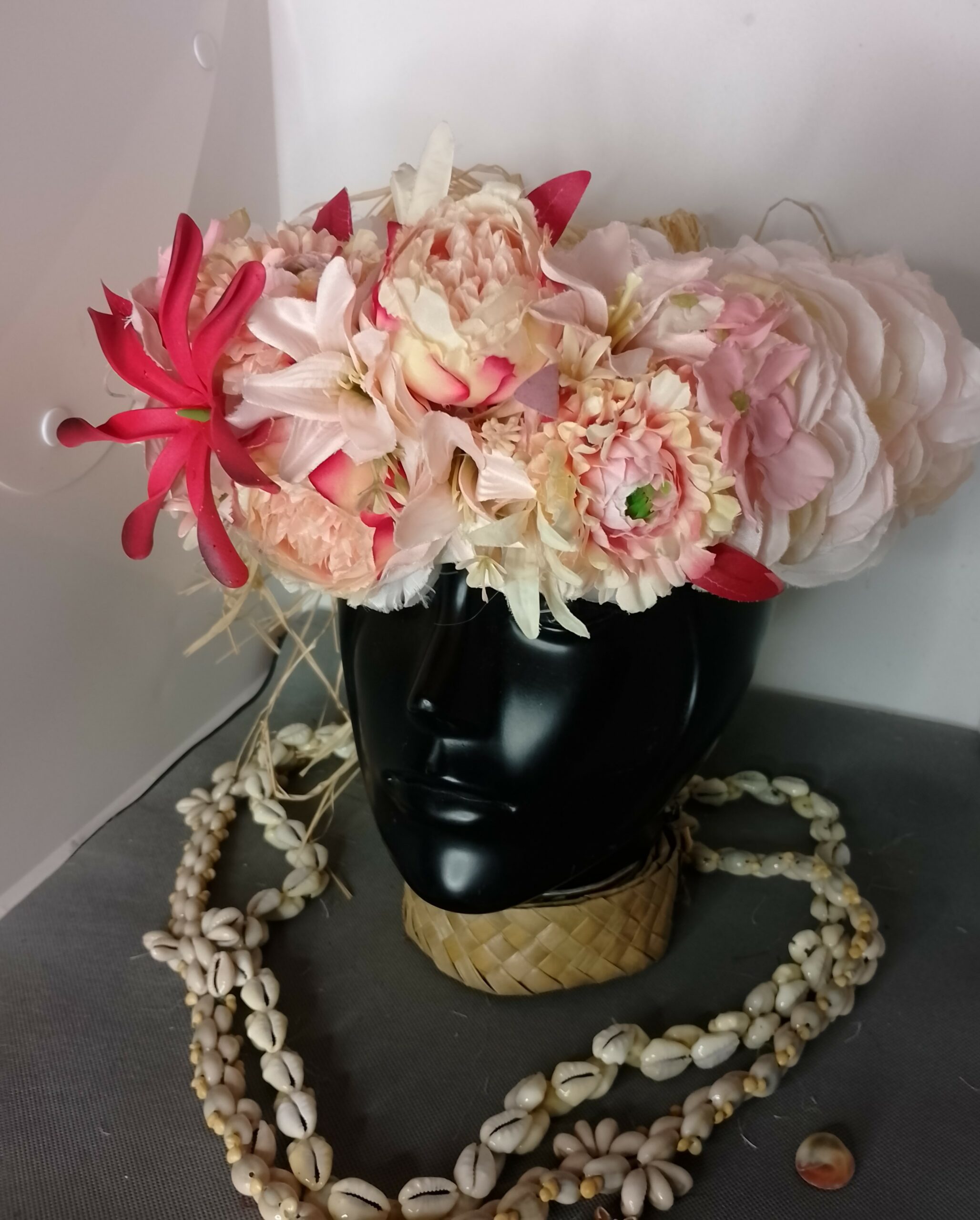 Ainsi composes ta  Couronne de tête artisanale fleurs Tahiti artificielles en fonction des produits en stock pour un service rapide.
