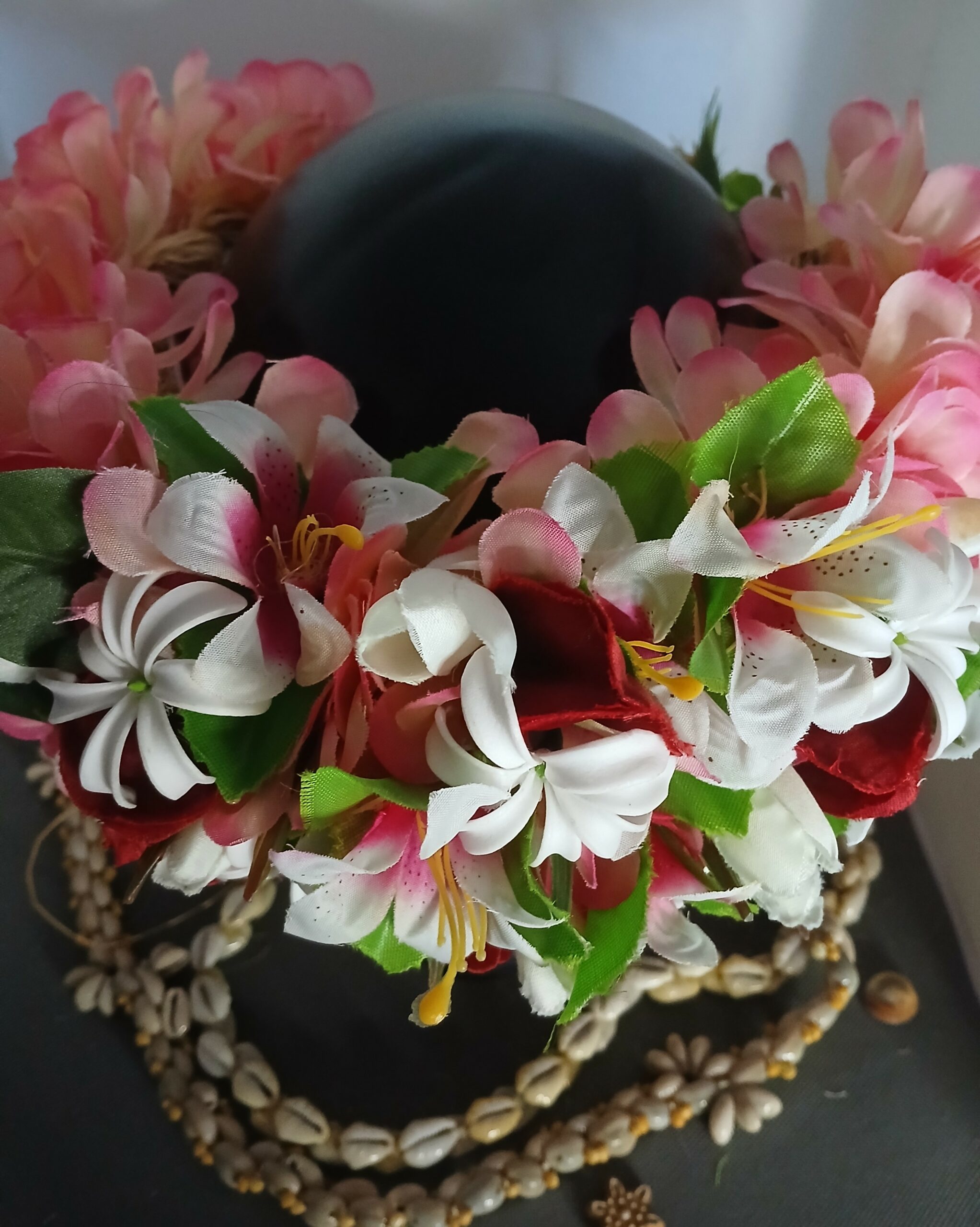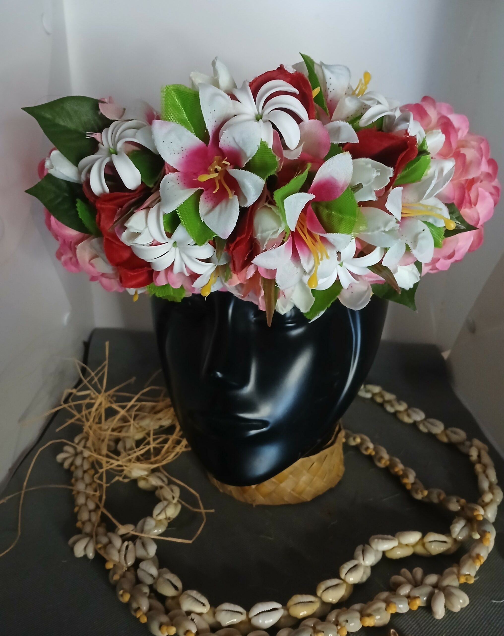 Ainsi composes ta Couronne de tête artisanale fleurs Tahiti artificielles en fonction des produits en stock pour un service rapide.
