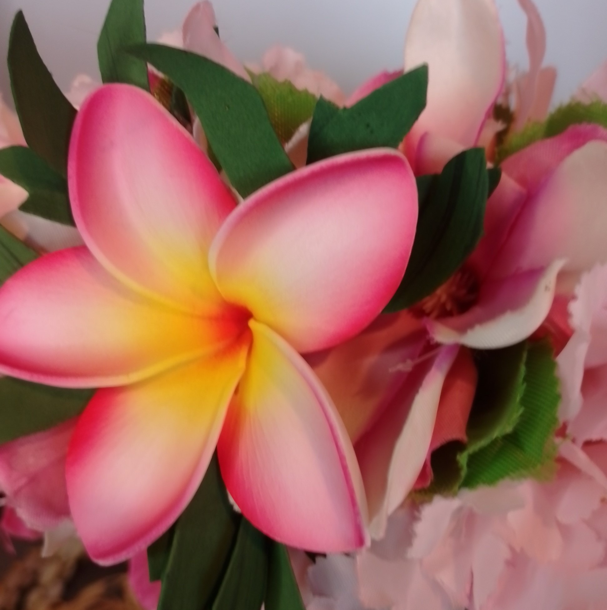 La fleur de frangipanier est en mousse.