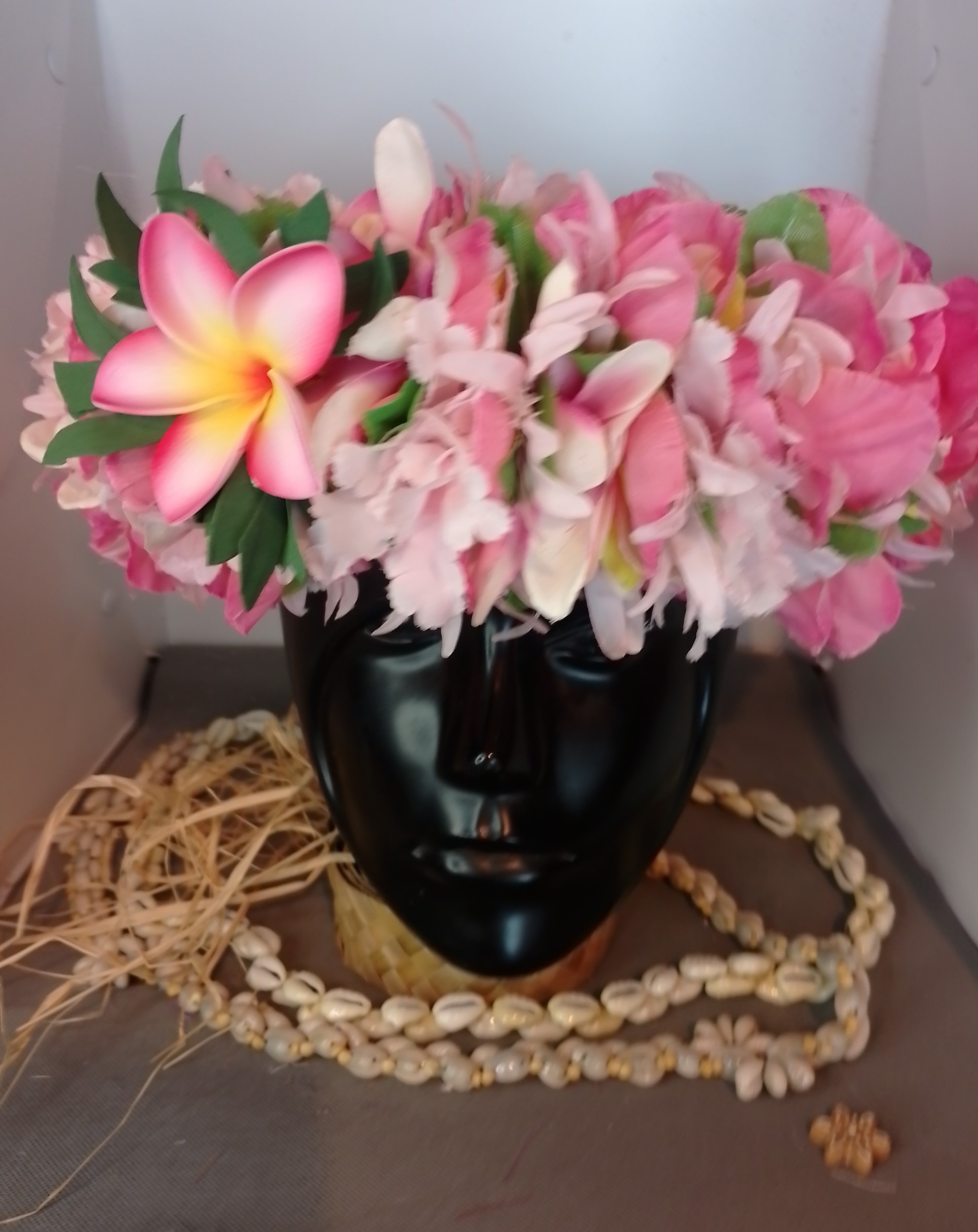 Ainsi composes ta  Couronne de tête artisanale fleurs Tahiti artificielles en fonction des produits en stock pour un service rapide.