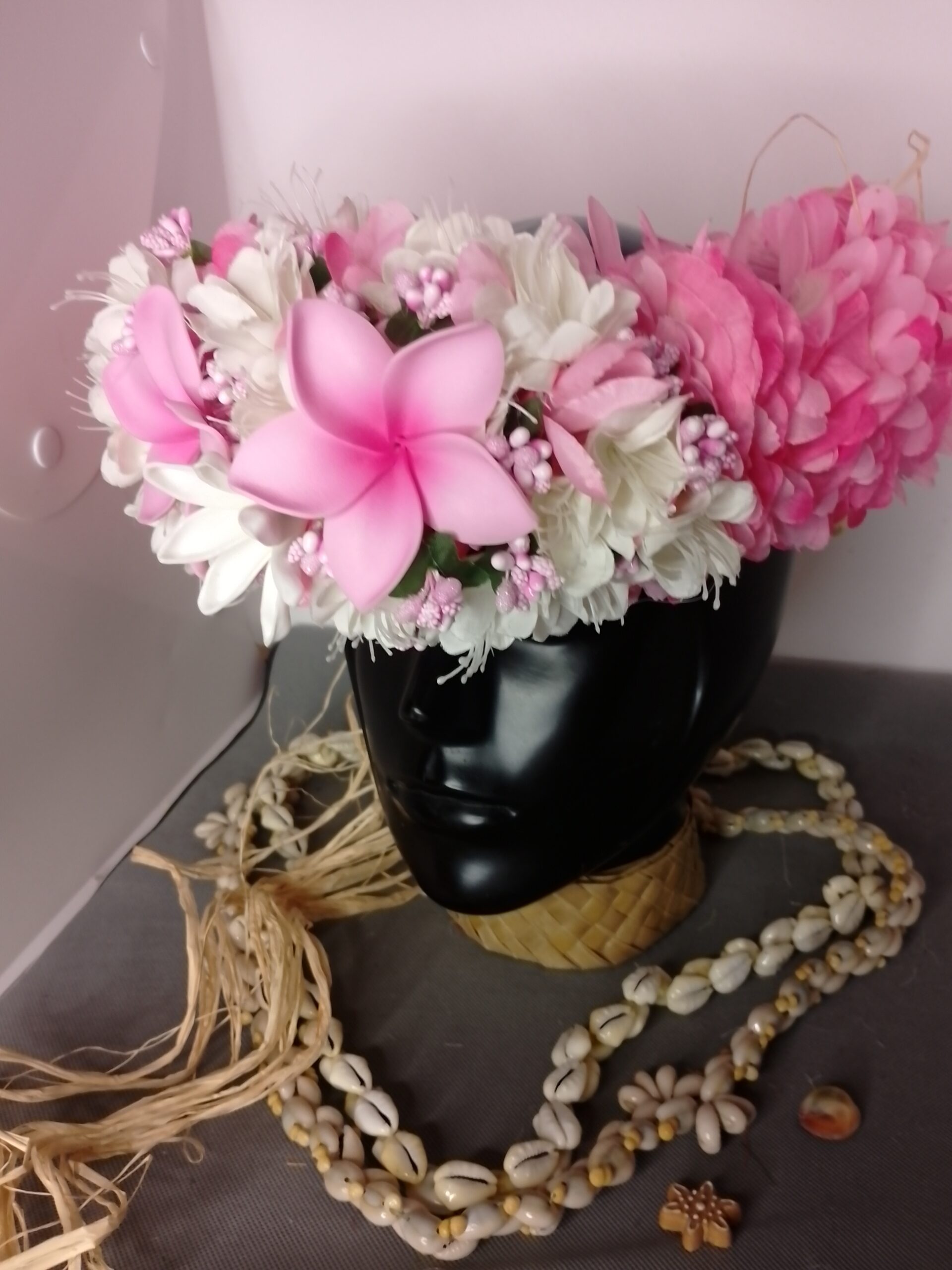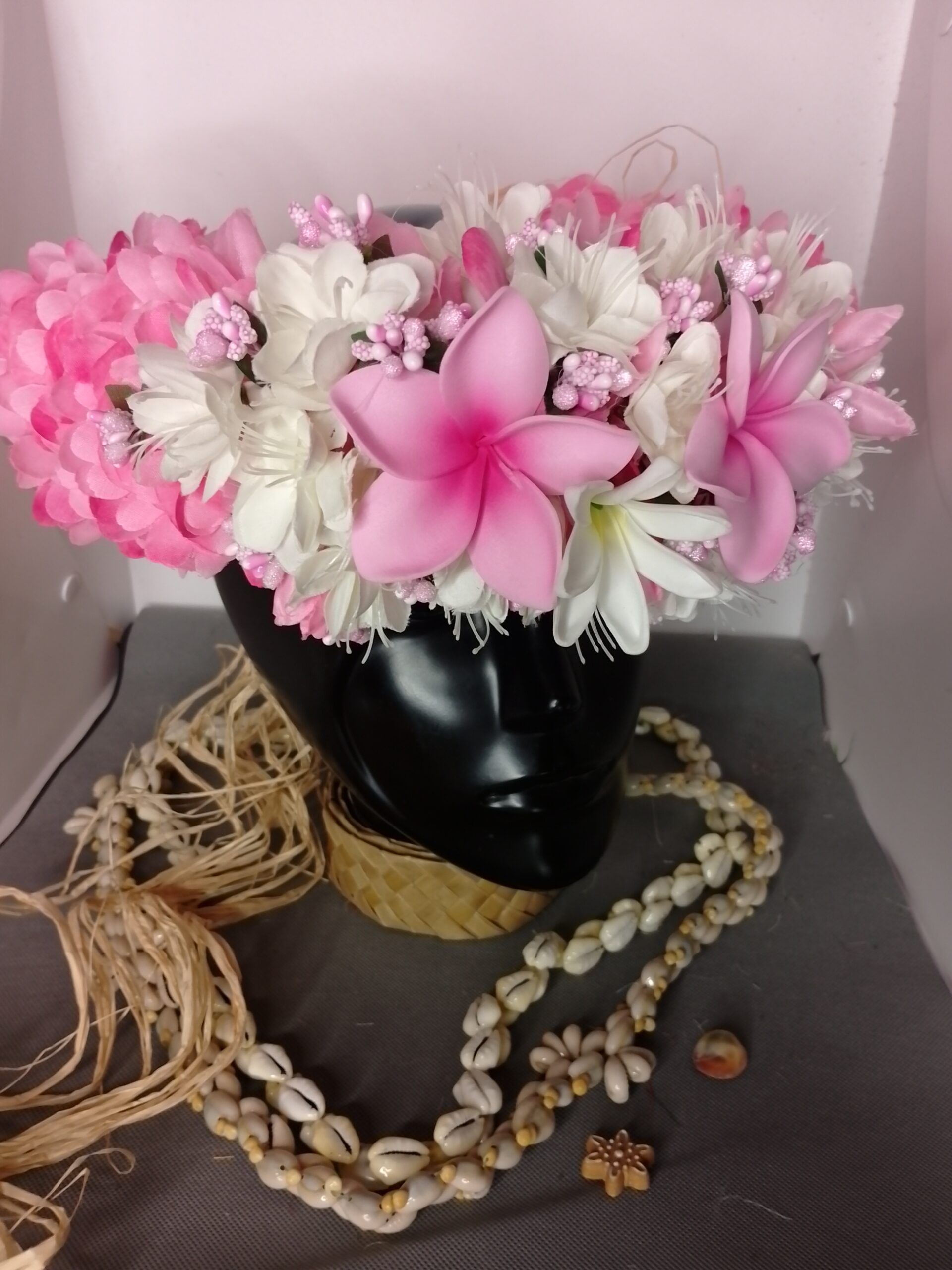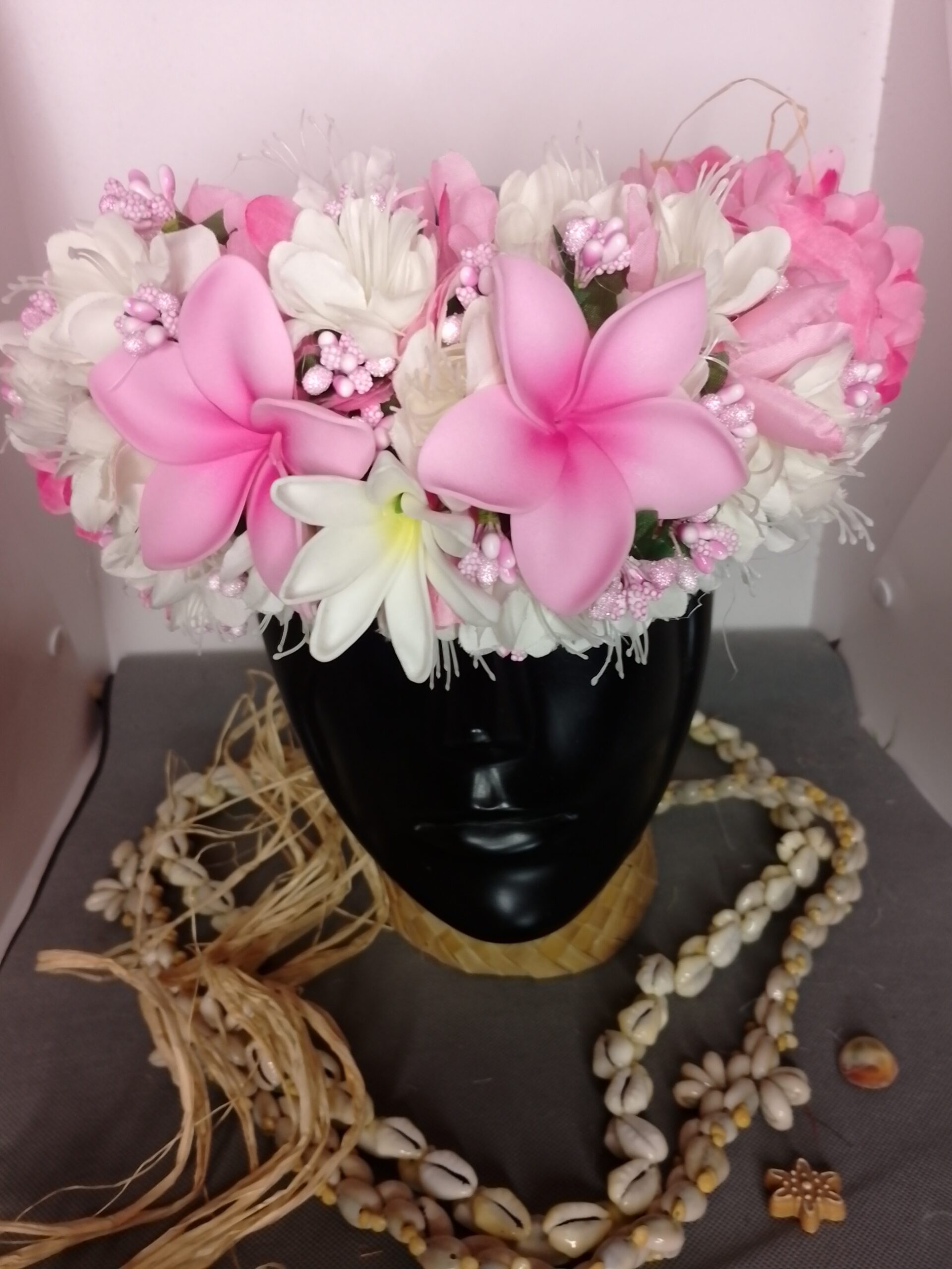 Ainsi composes ta Couronne de tête artisanale fleurs Tahiti artificielles en fonction des produits en stock pour un service rapide.