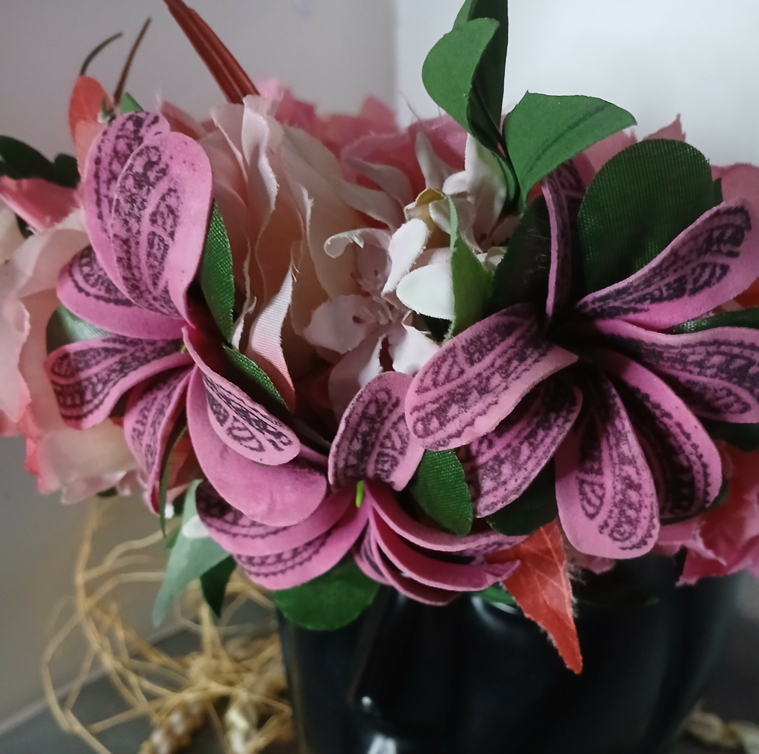 – pour la base : possibilités de choisir trois tailles et nombreuses couleurs des pétales, ou des brins de raphia naturel et bolduc colorés à associer