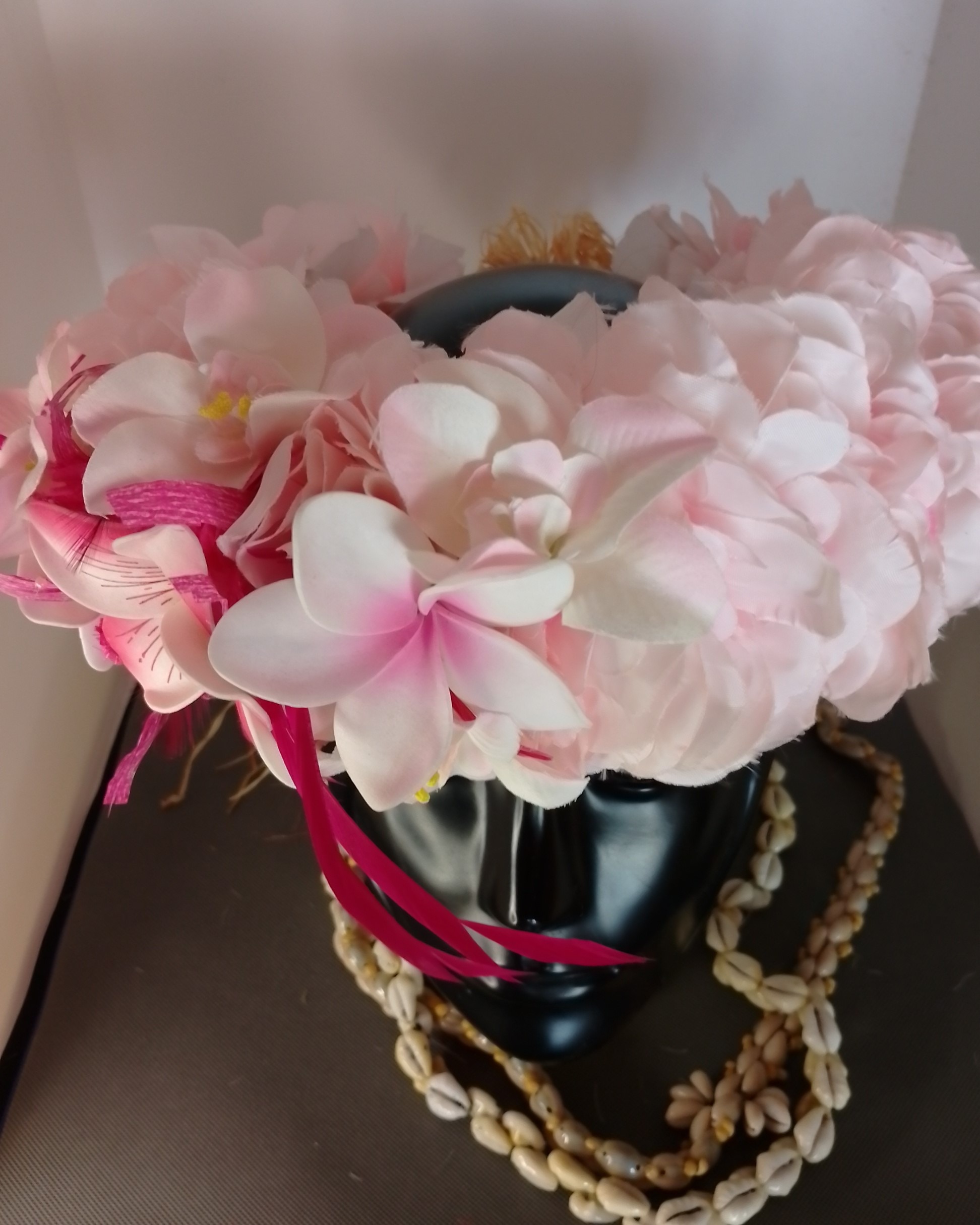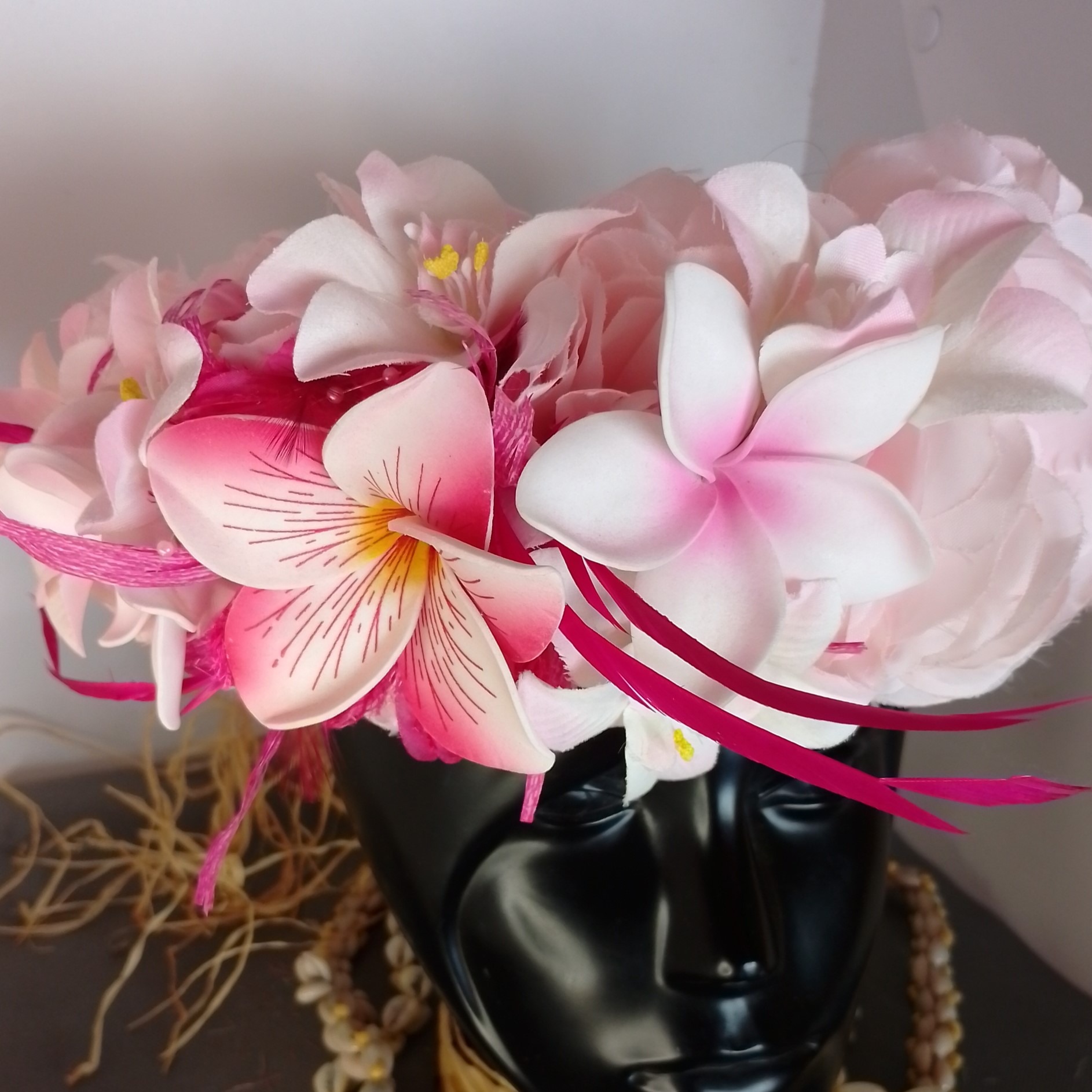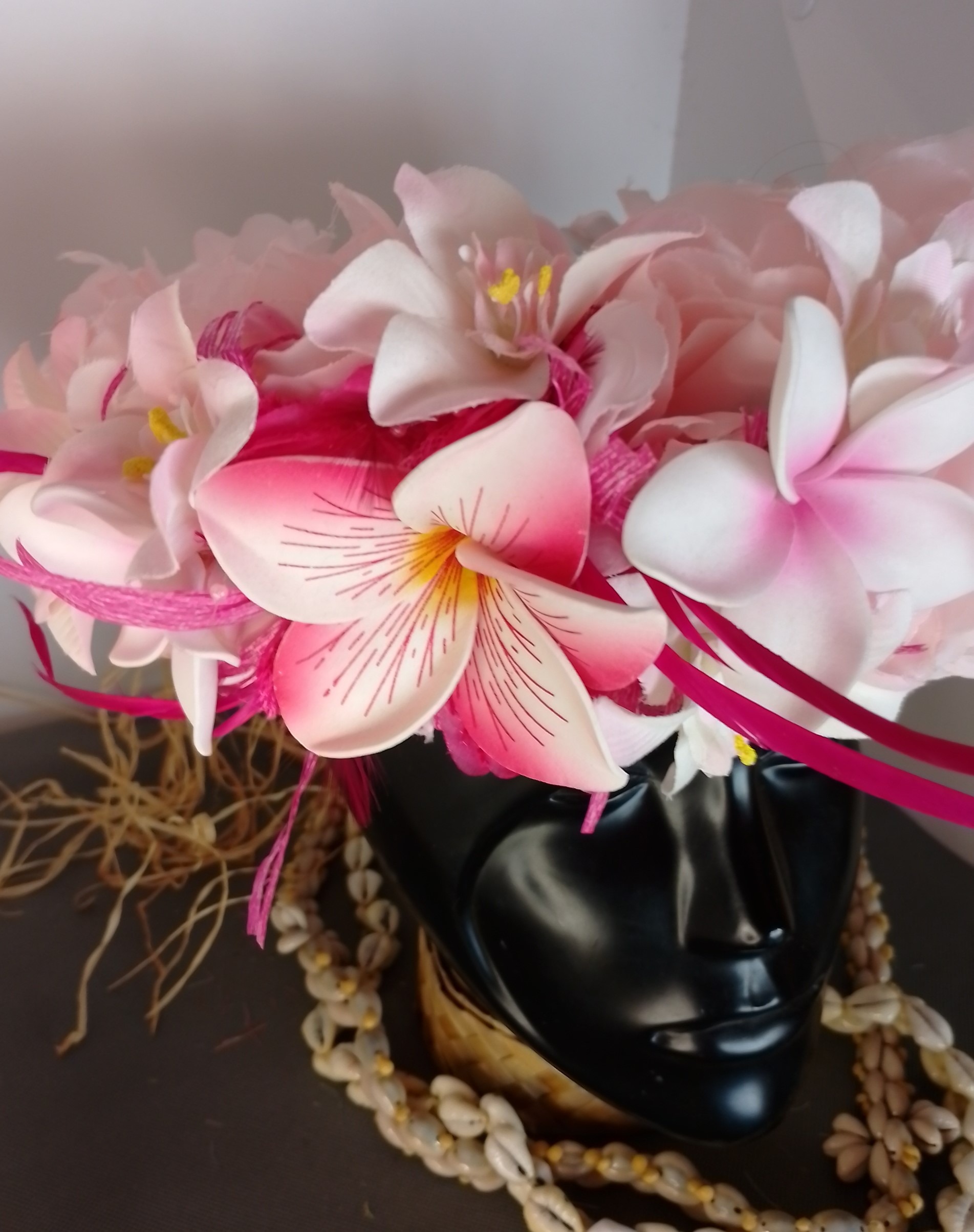 Ainsi composes ta Couronne de tête artisanale fleurs Tahiti artificielles en fonction des produits en stock pour un service rapide.