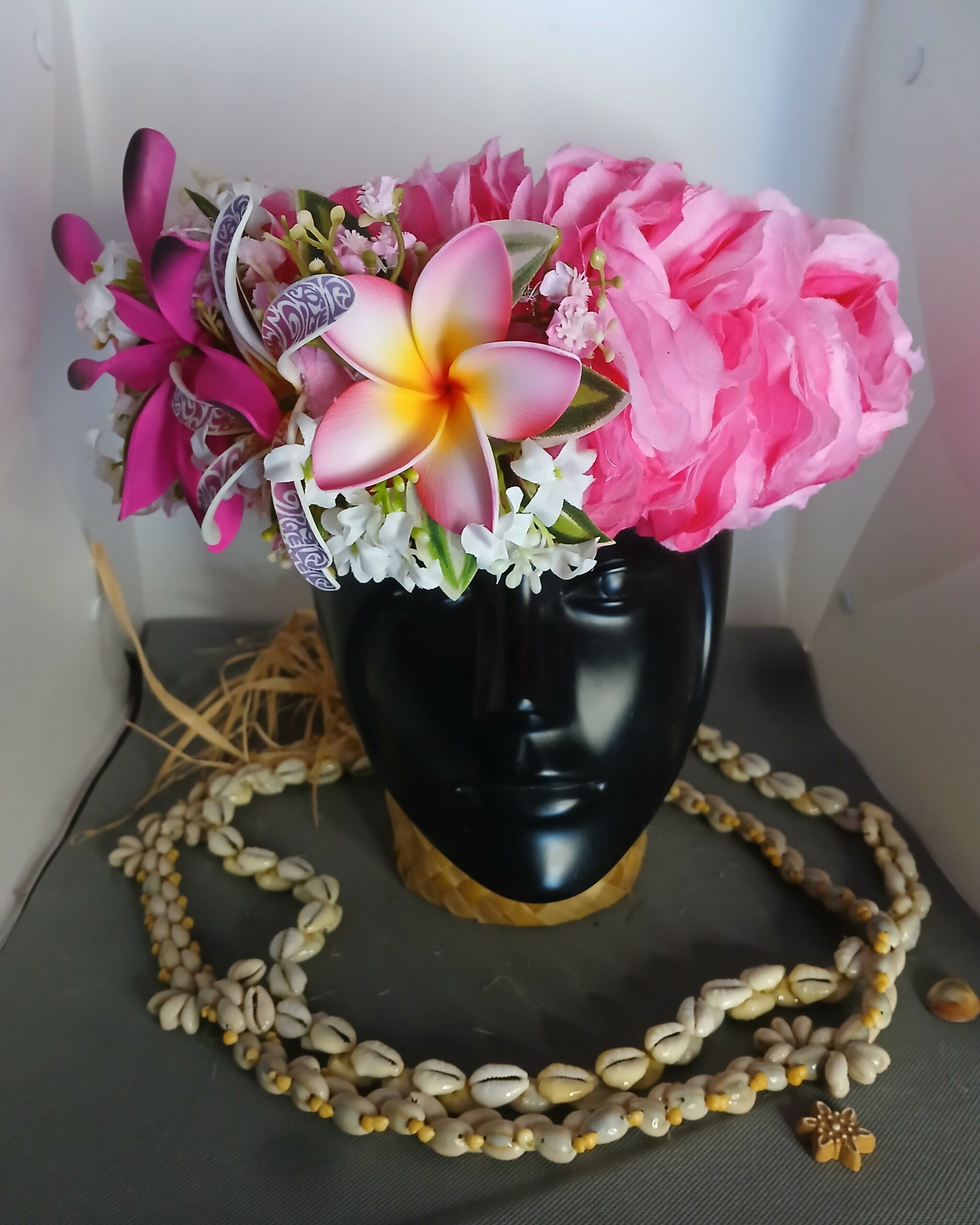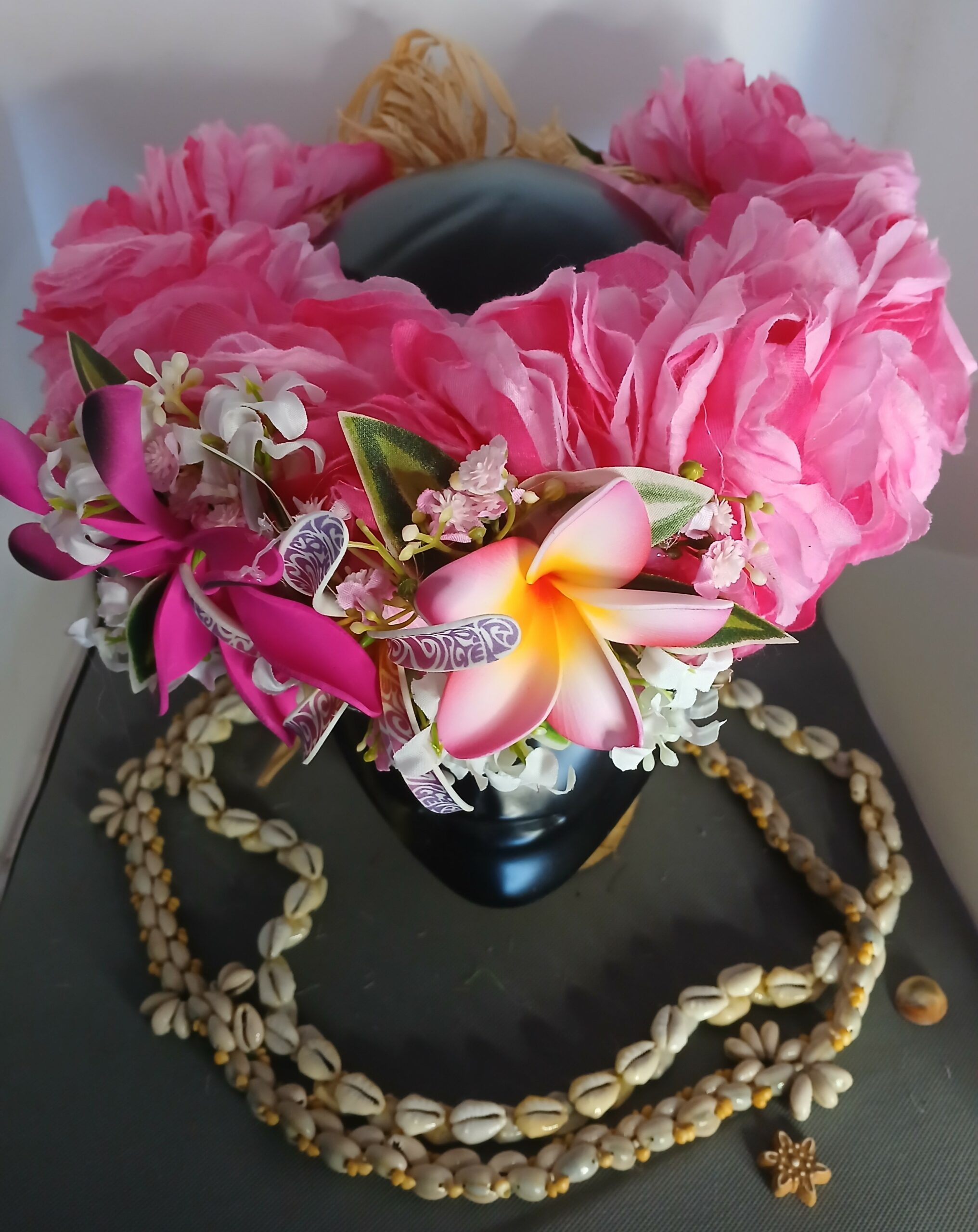 Ainsi composes ta Couronne de tête artisanale fleurs Tahiti artificielles en fonction des produits en stock pour un service rapide.