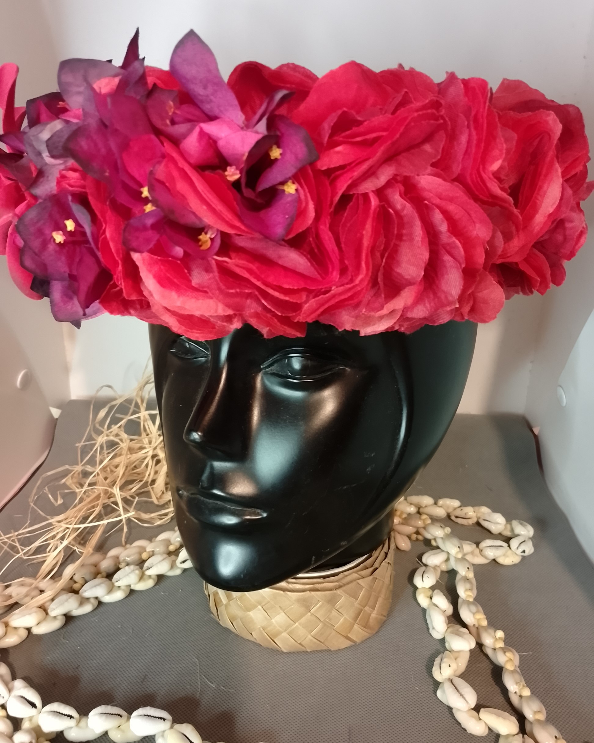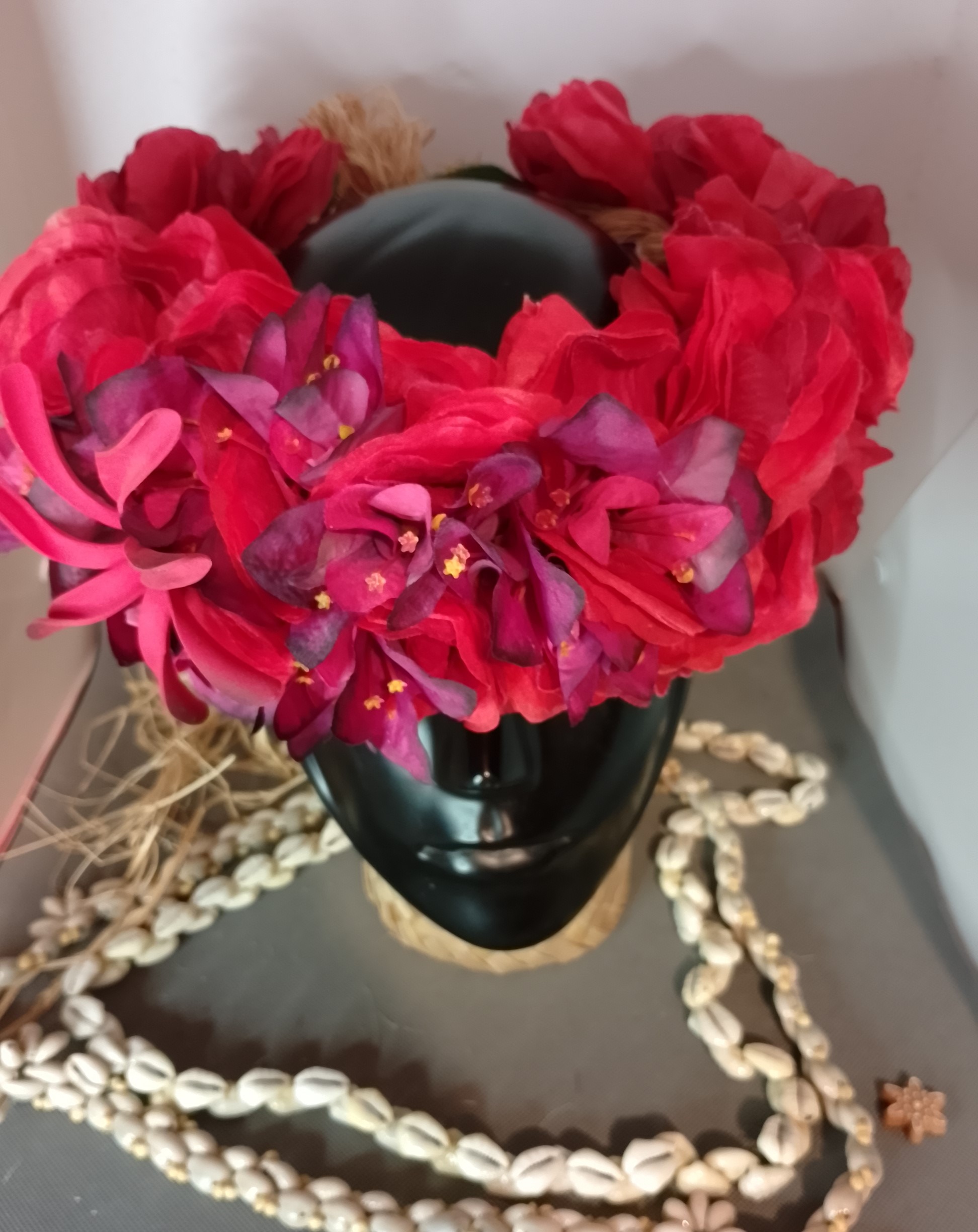 Couronne fleur Tahiti rouge bougainvillier prune maxi tiare