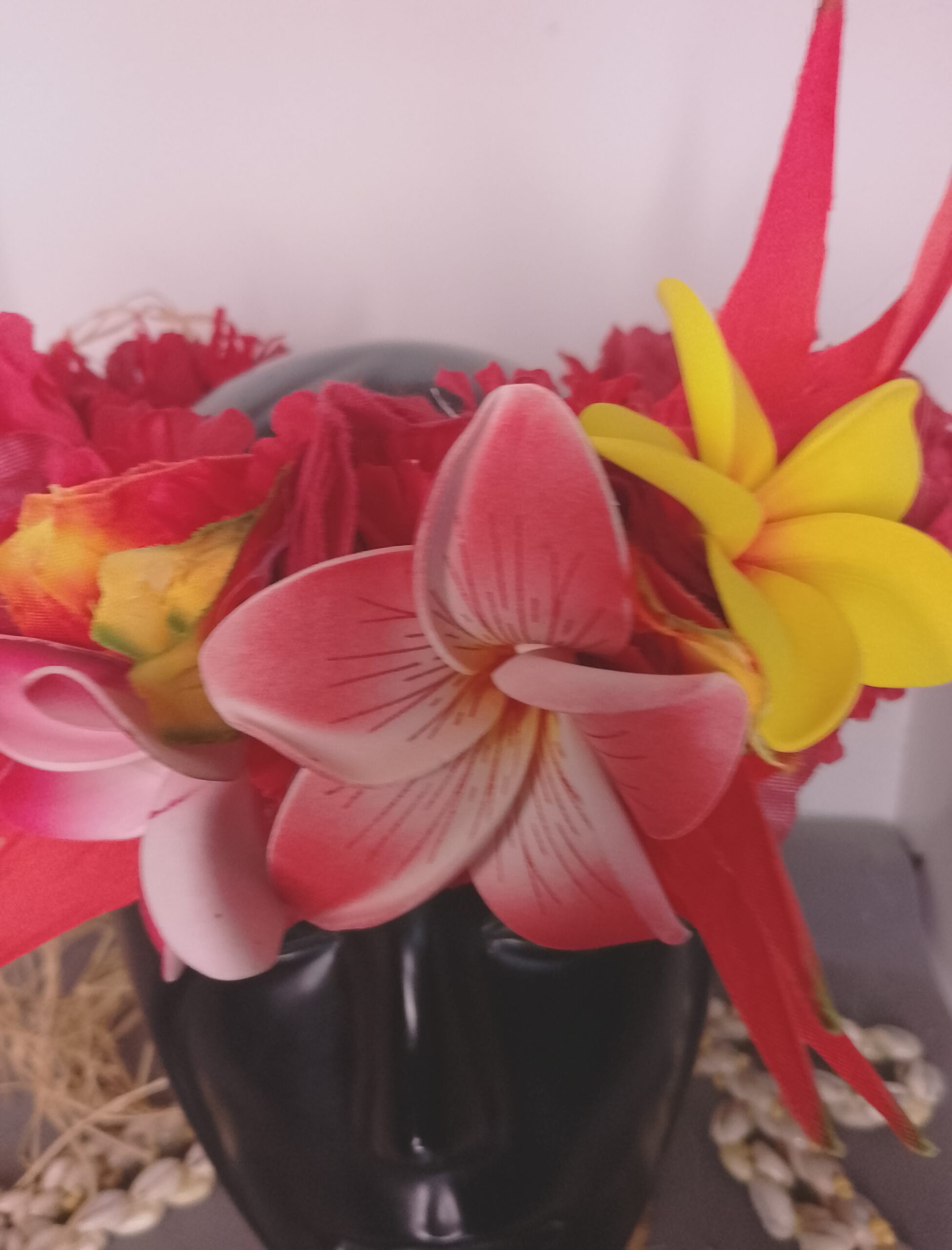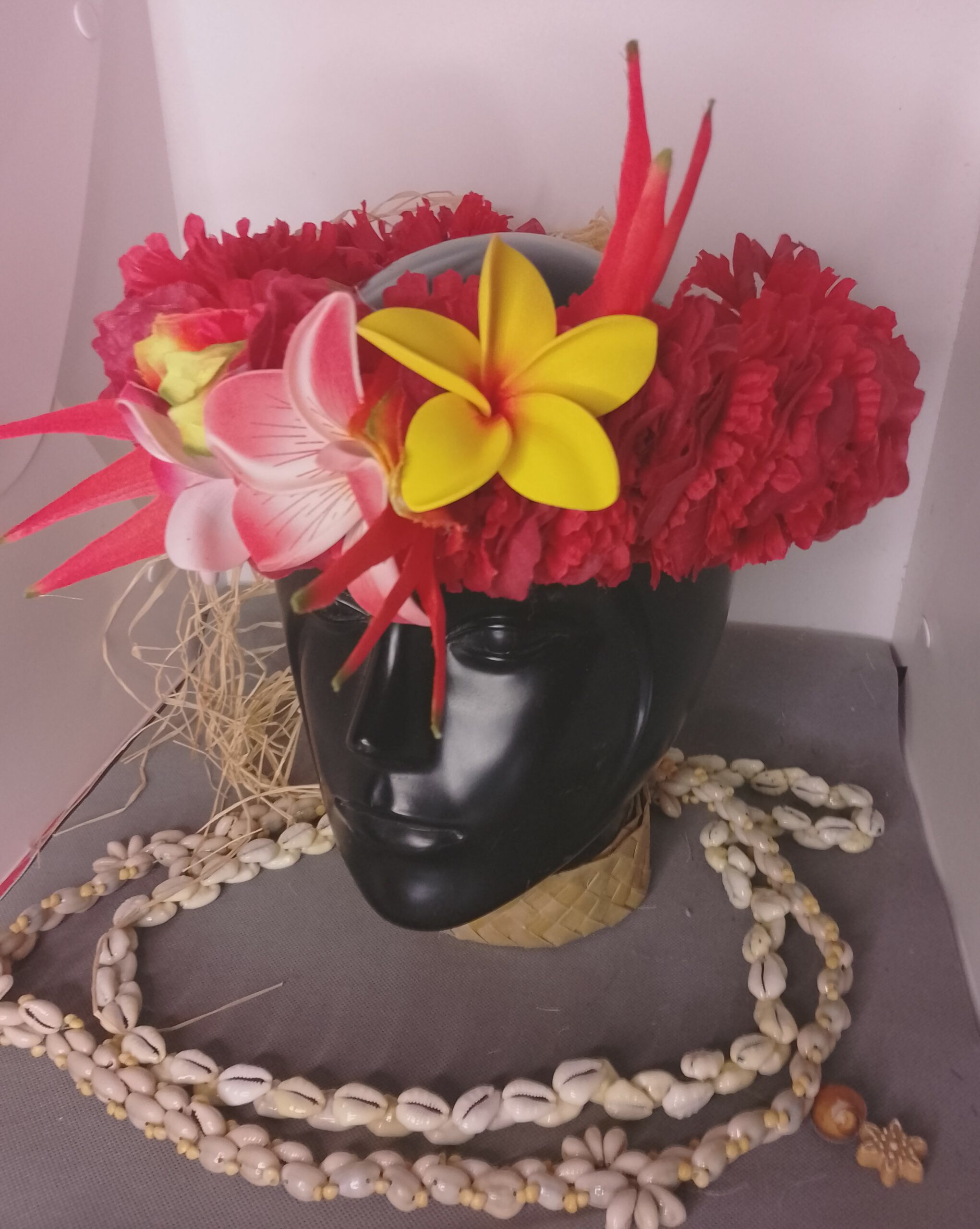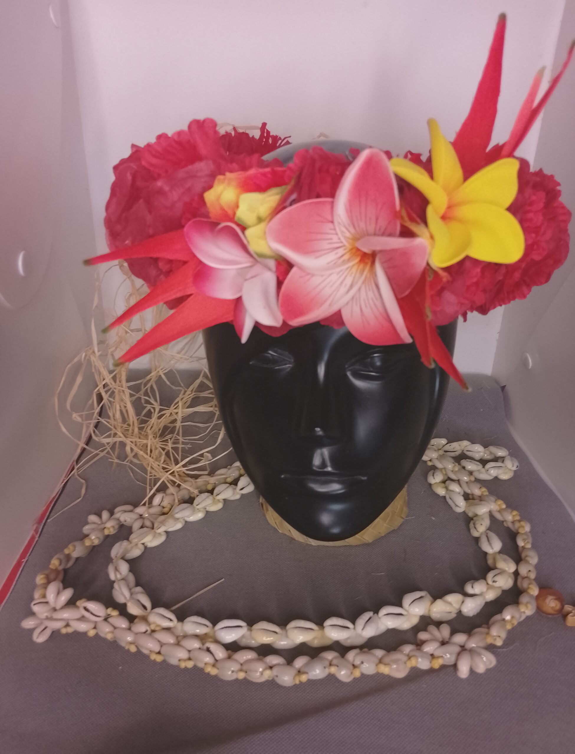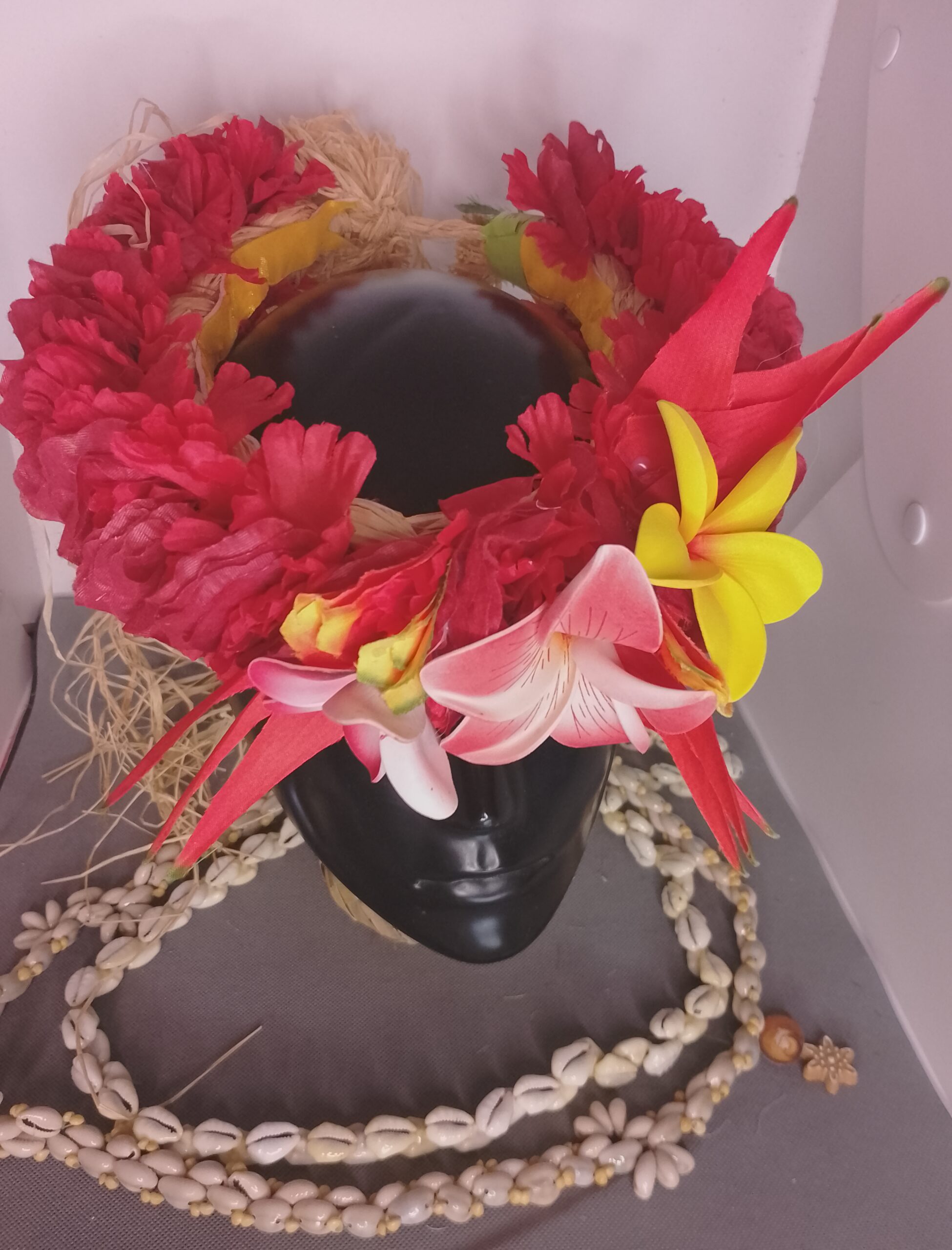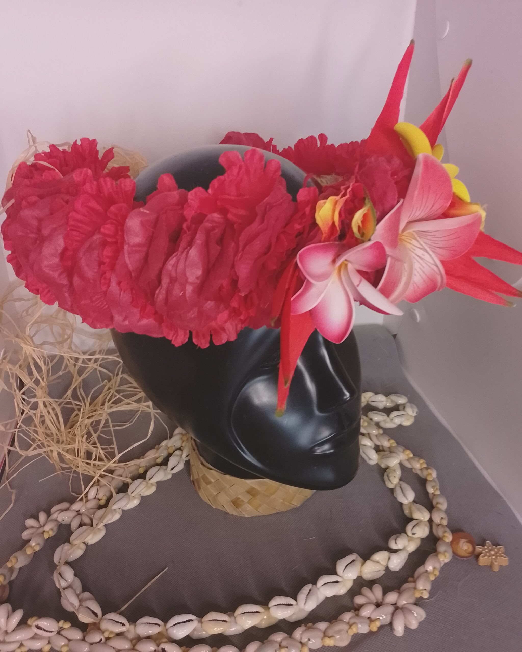 Couronne fleur Tahiti rouge trois tipanie différents pétales oiseau du paradis