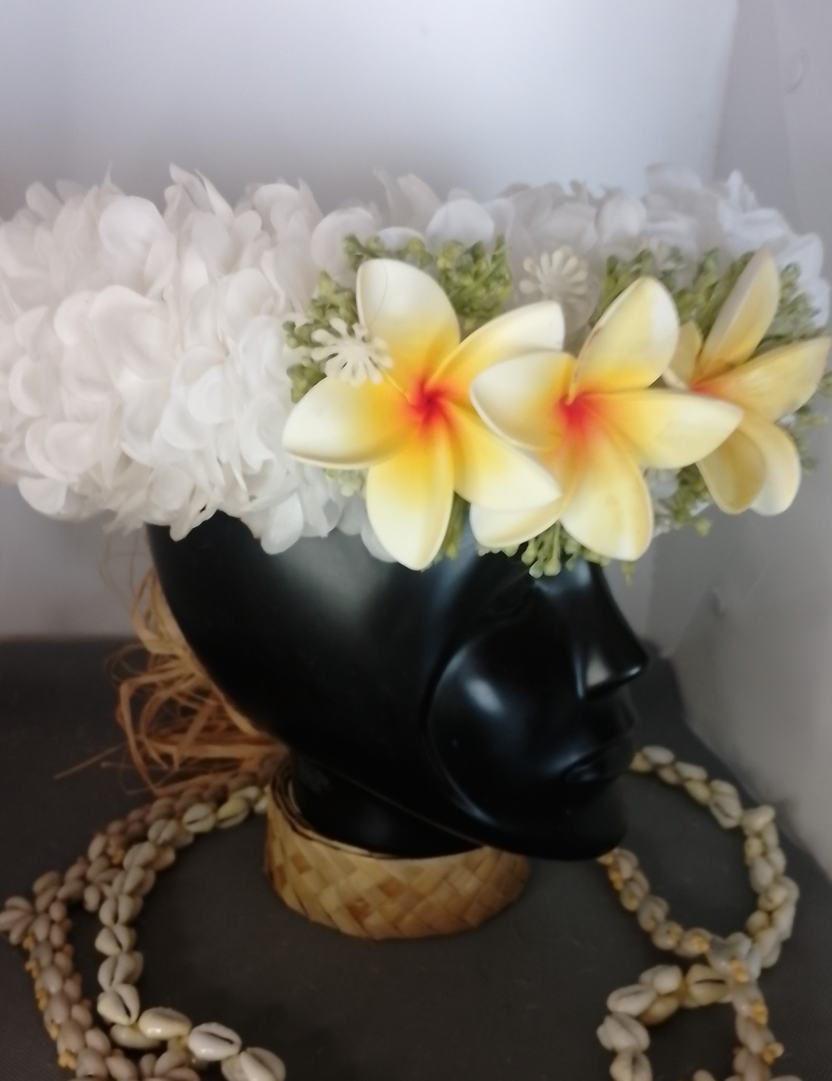 Ainsi composes ta  Couronne de tête artisanale fleurs Tahiti artificielles en fonction des produits en stock pour un service rapide.