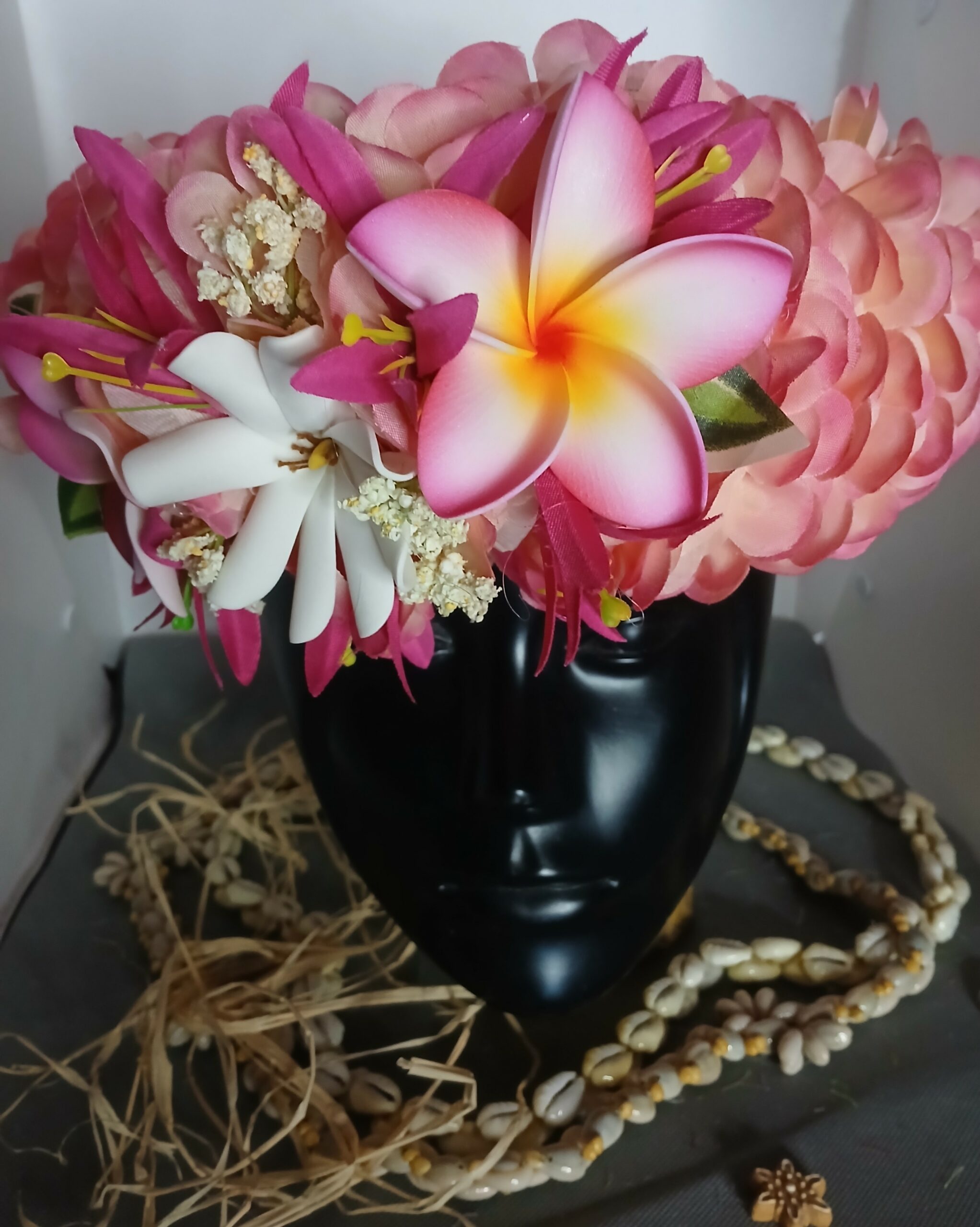 Ainsi composes ta Couronne de tête artisanale fleurs Tahiti artificielles en fonction des produits en stock pour un service rapide.