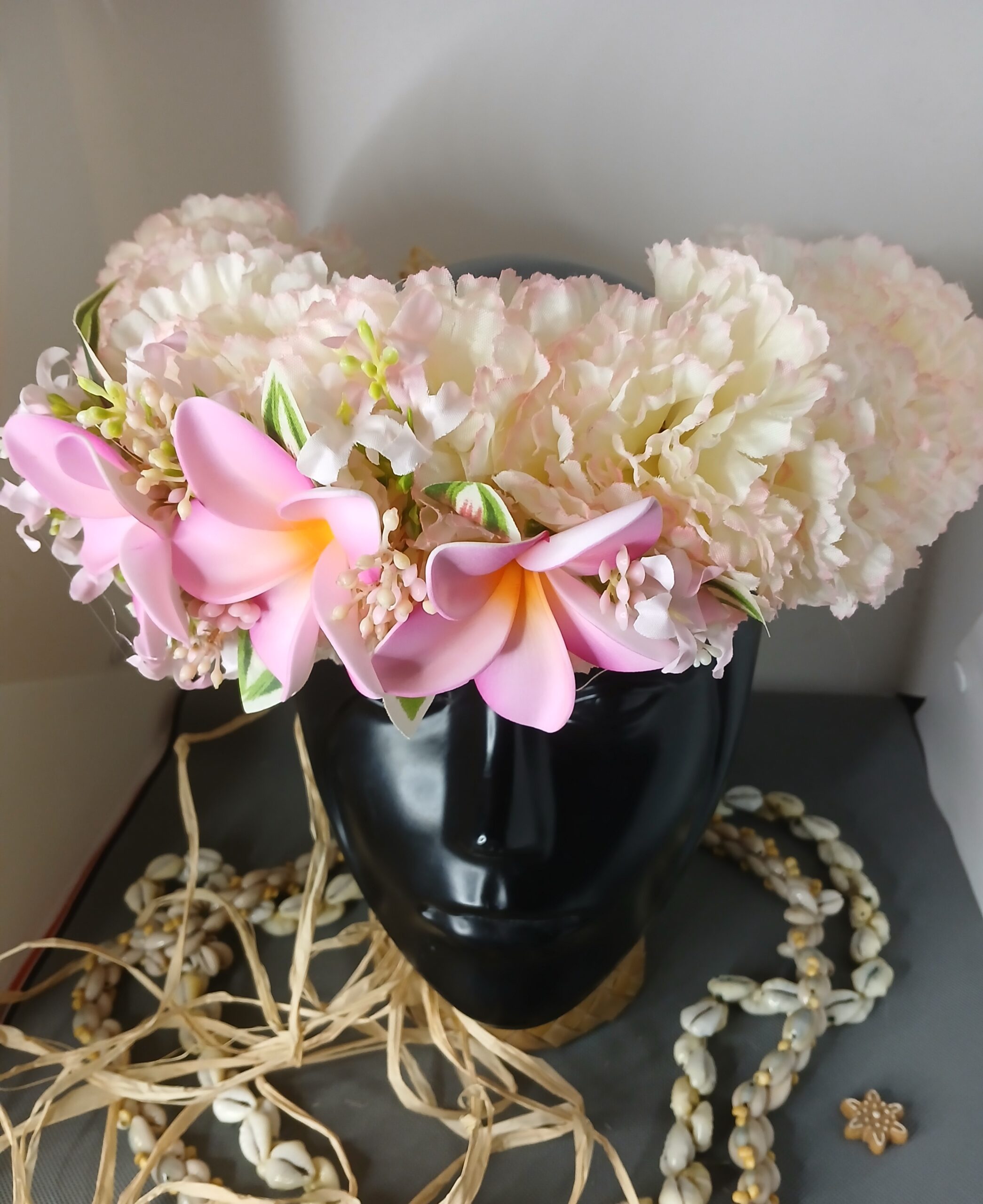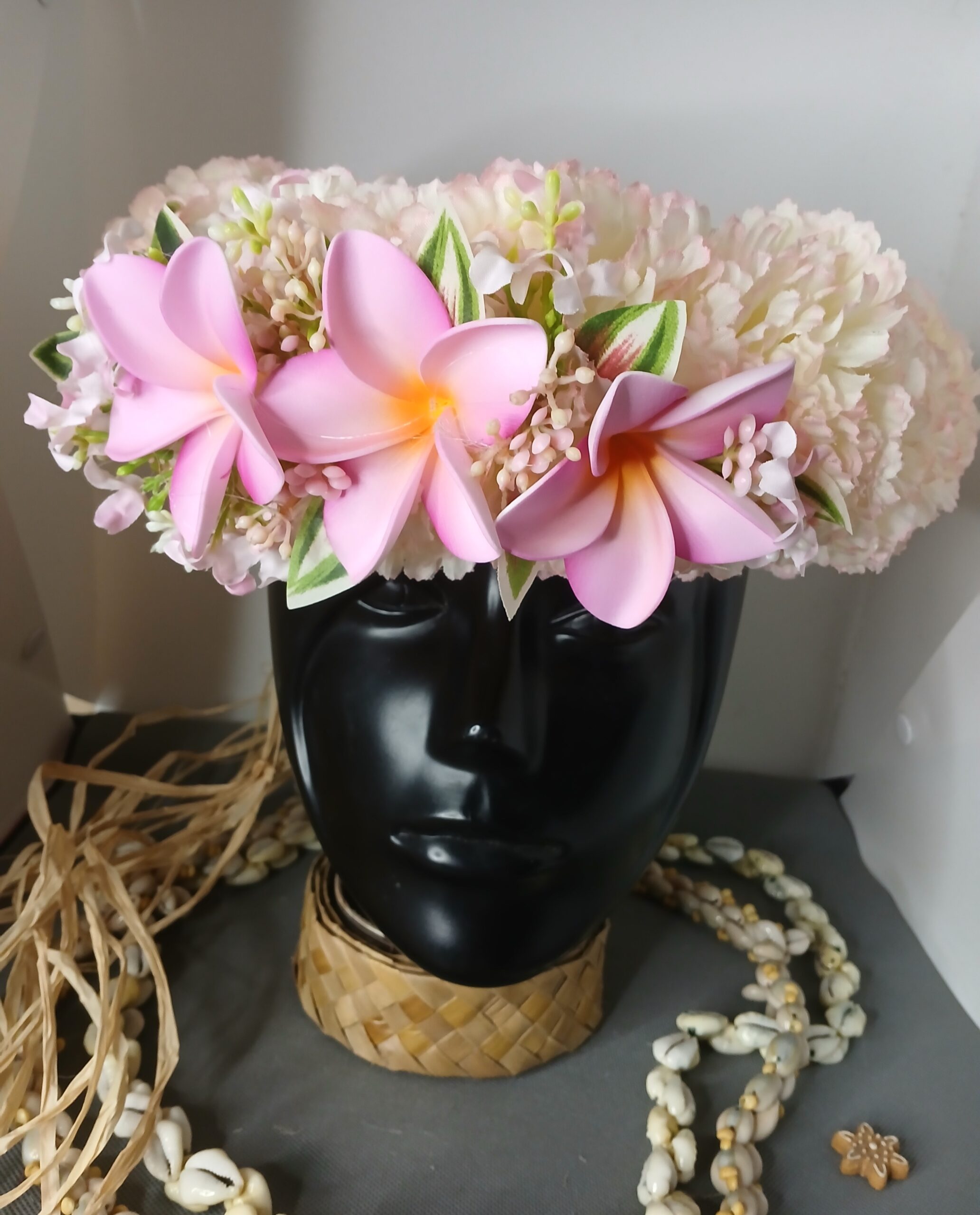Ainsi composes ta Couronne de tête artisanale fleurs Tahiti artificielles en fonction des produits en stock pour un service rapide.