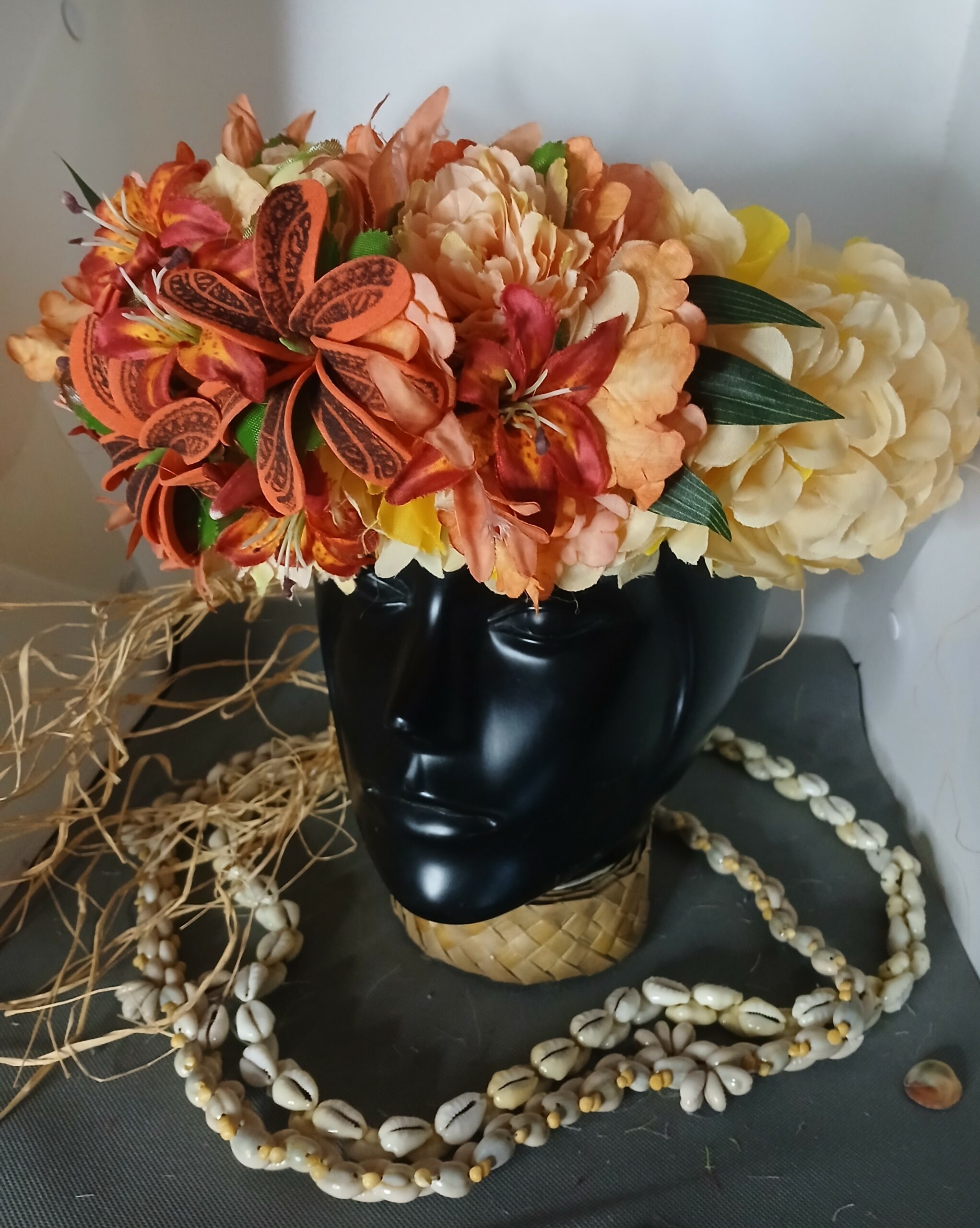 Ainsi composes ta Couronne de tête artisanale fleurs Tahiti artificielles en fonction des produits en stock pour un service rapide.