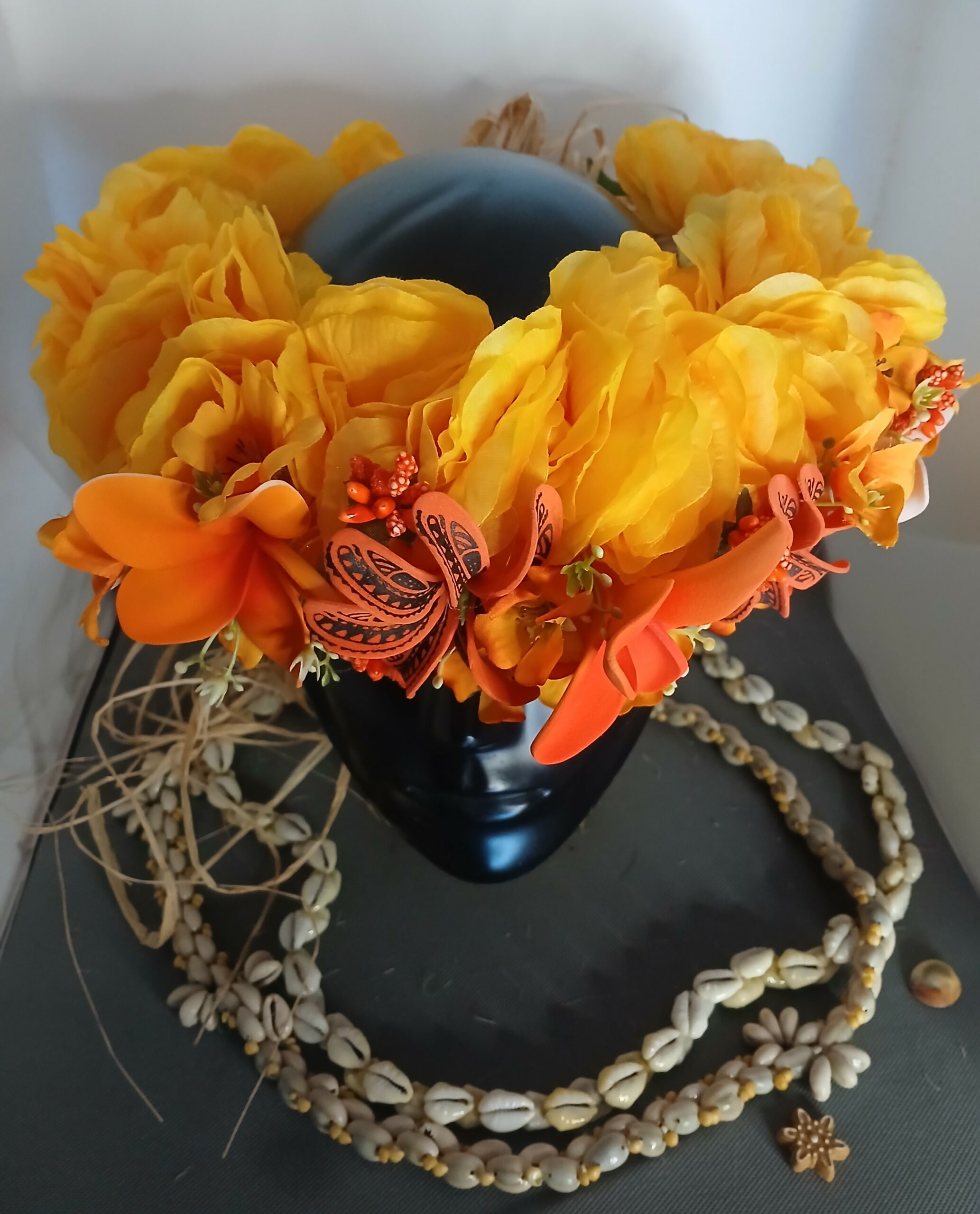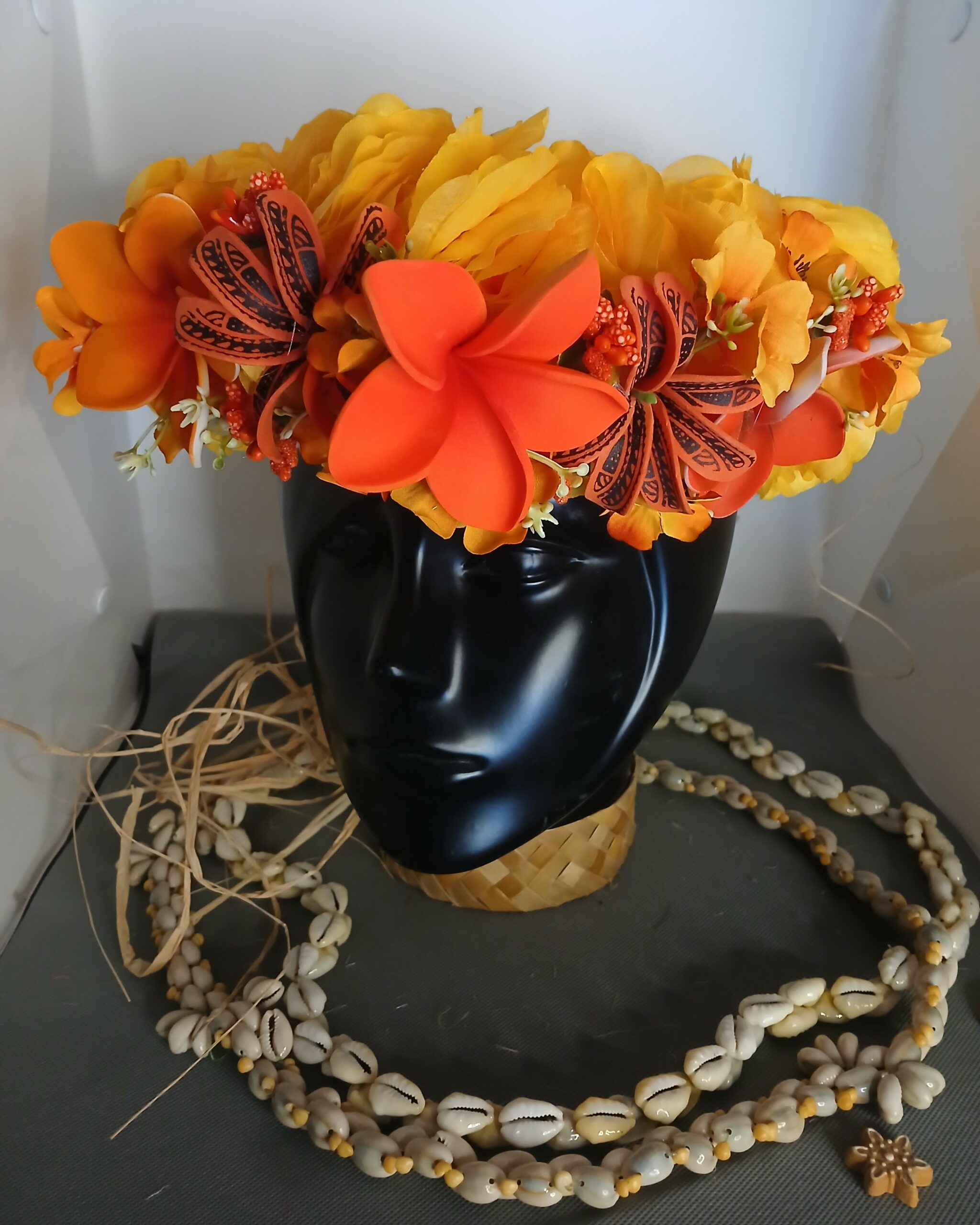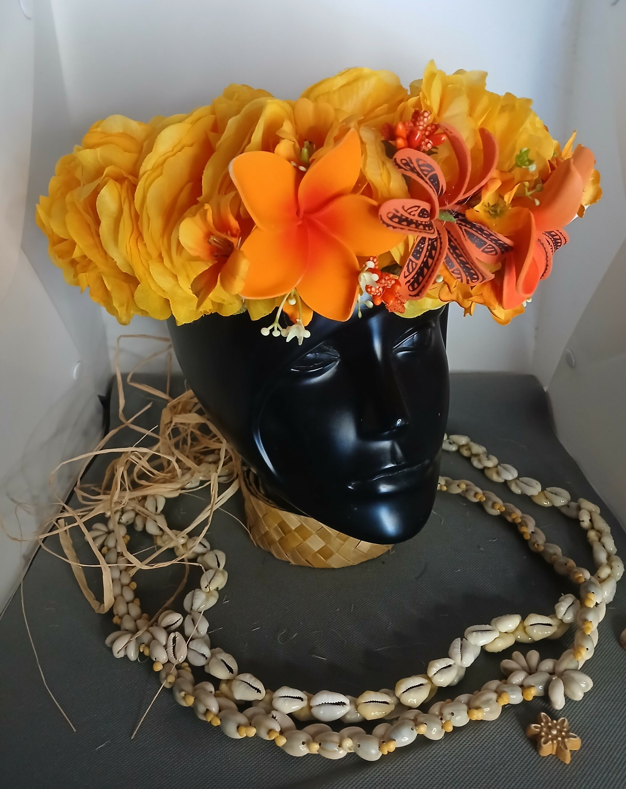 Ainsi composes ta Couronne de tête artisanale fleurs Tahiti artificielles en fonction des produits en stock pour un service rapide.
