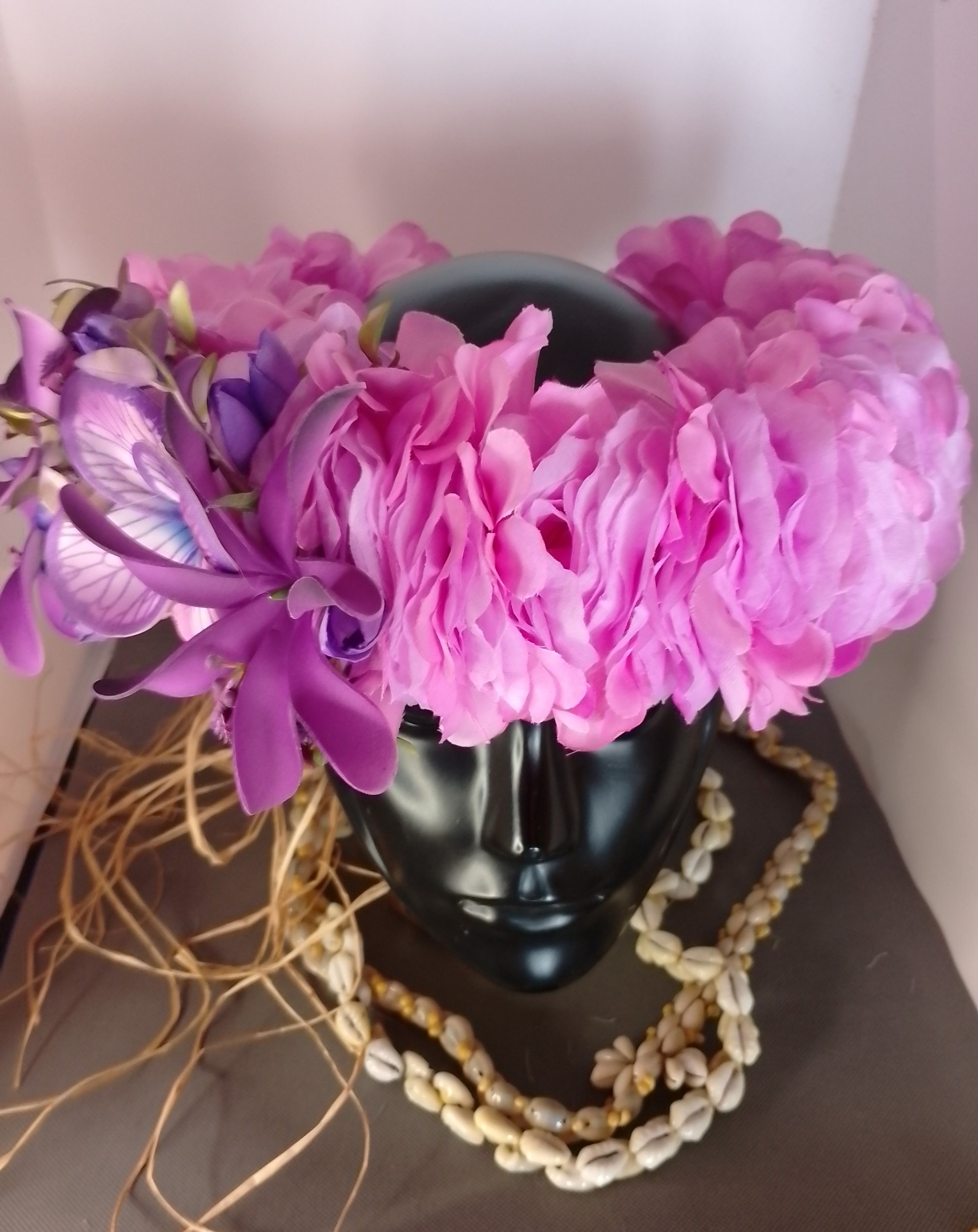 Les couronnes de fleurs tel que cette Couronne fleurs Tahiti mauve deux maxi tiare tipanie décor aile de papillon peuvent être portées lors de nombreuses occasions pour ajouter une touche de beauté, célébrer des moments spéciaux, ou honorer des traditions culturelles. Que ce soit pour un mariage, une fête, un festival, une cérémonie religieuse, ou une séance photo, les couronnes de fleurs apportent une dimension esthétique et symbolique qui enrichit l’événement.