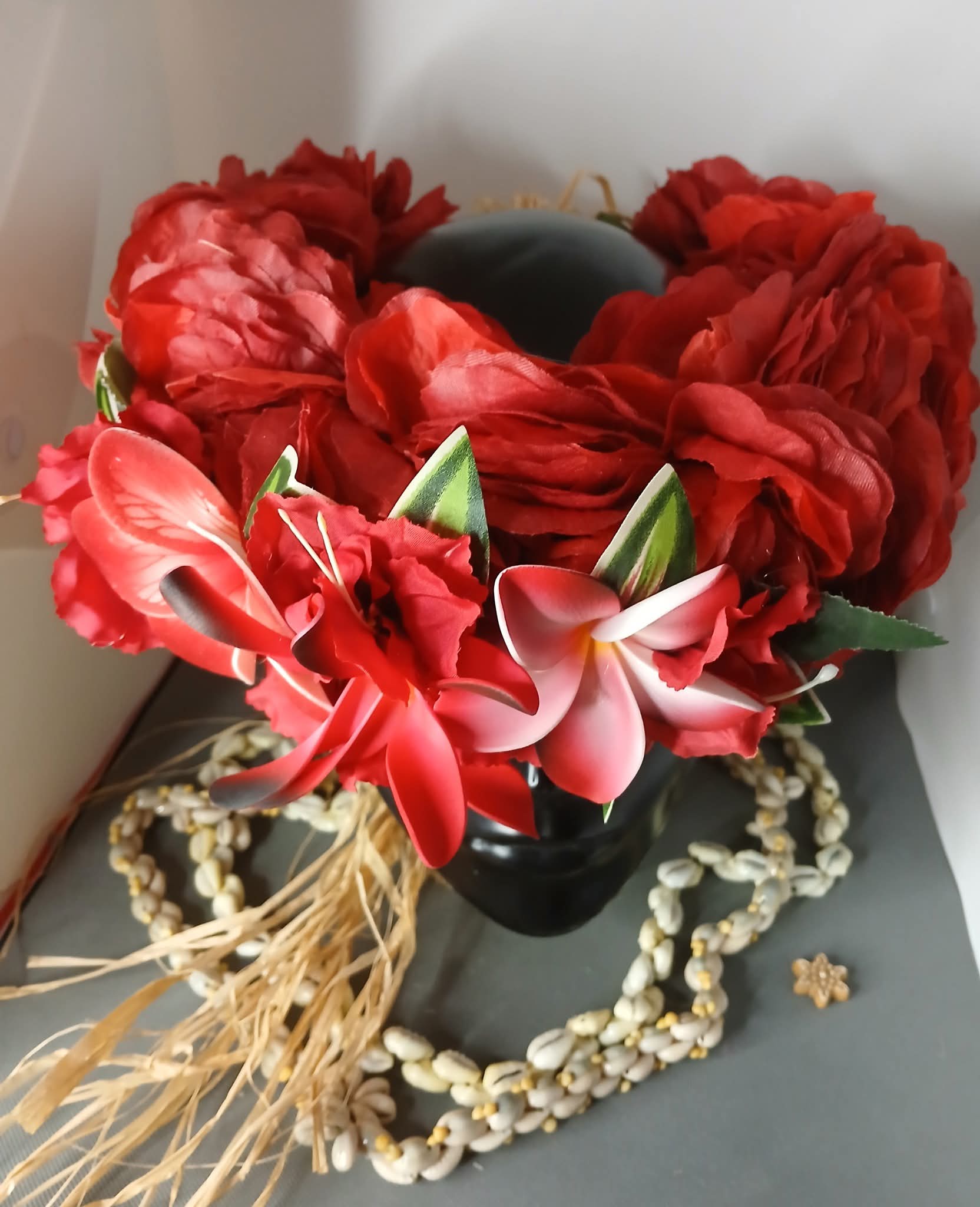 Couronne fleurs Tahiti rouge maxi tipanie maxi tiare tipanie