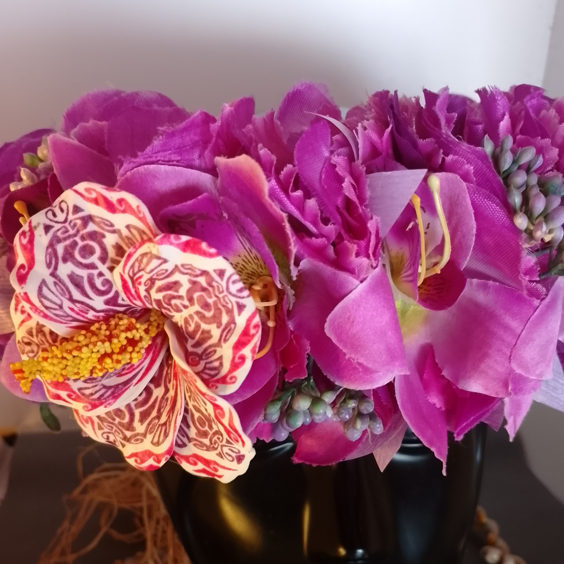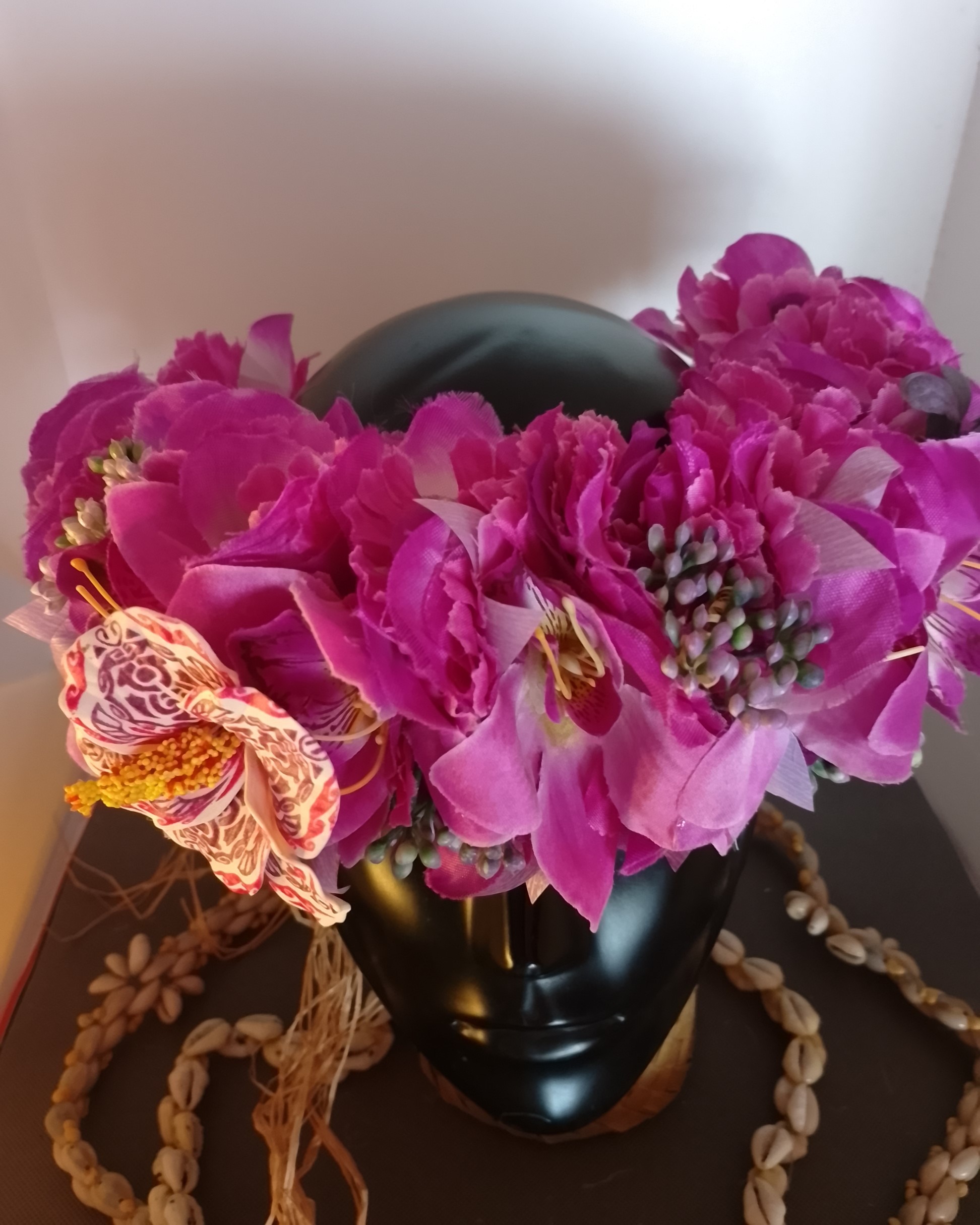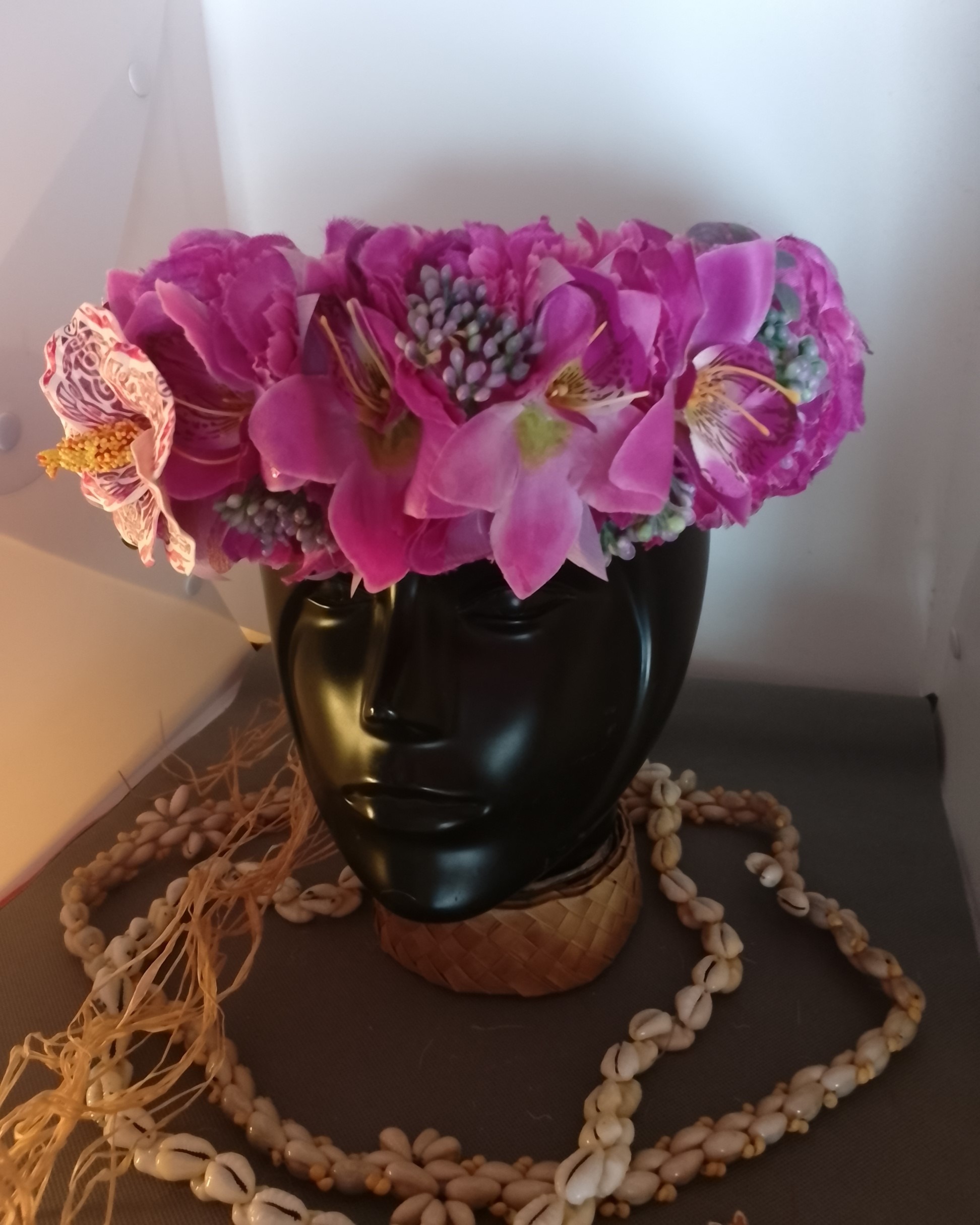 Modèle unique de couronne florale artisanale à floraison permanente avec fleurs de Tahiti by Vaite.e.Tiare créations