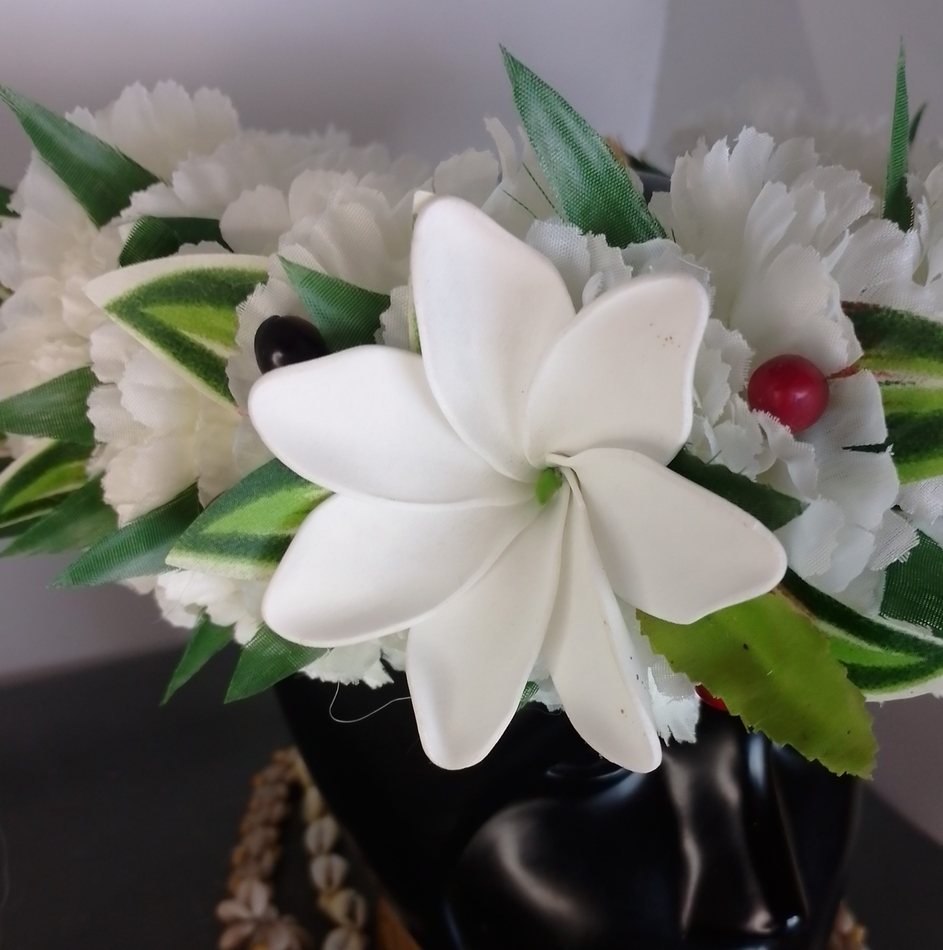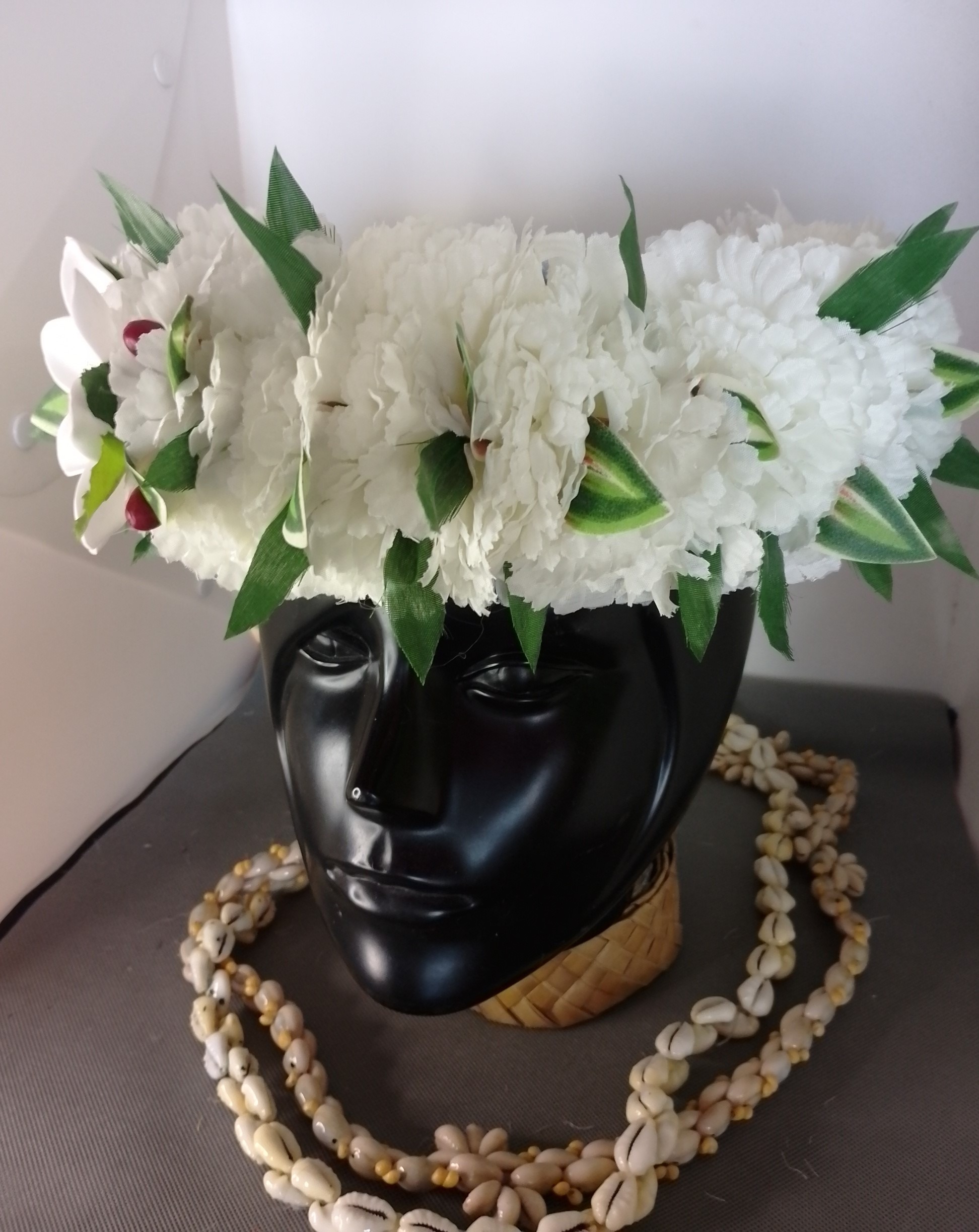 Ainsi composes ta Couronne florale de tête artisanale fleurs Tahiti permanentes en fonction des produits en stock pour un service rapide.
