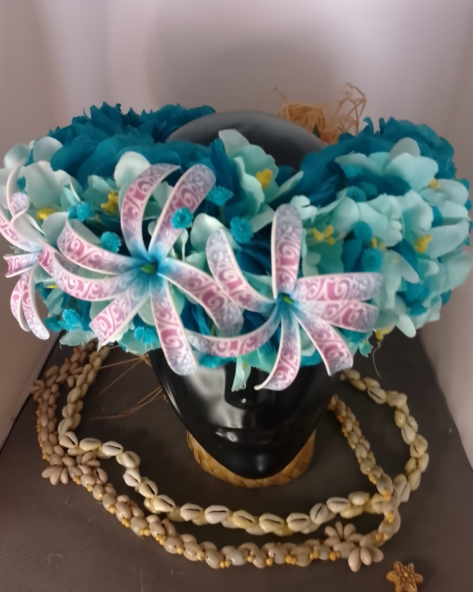Artisane créatrice, je peux confectionner spécialement pour toi un modèle personnalisé de couronne de fleurs tahitiennes ou costumes et accessoires de danse tahitienne, pour toi ou les adhérentes de ton association.