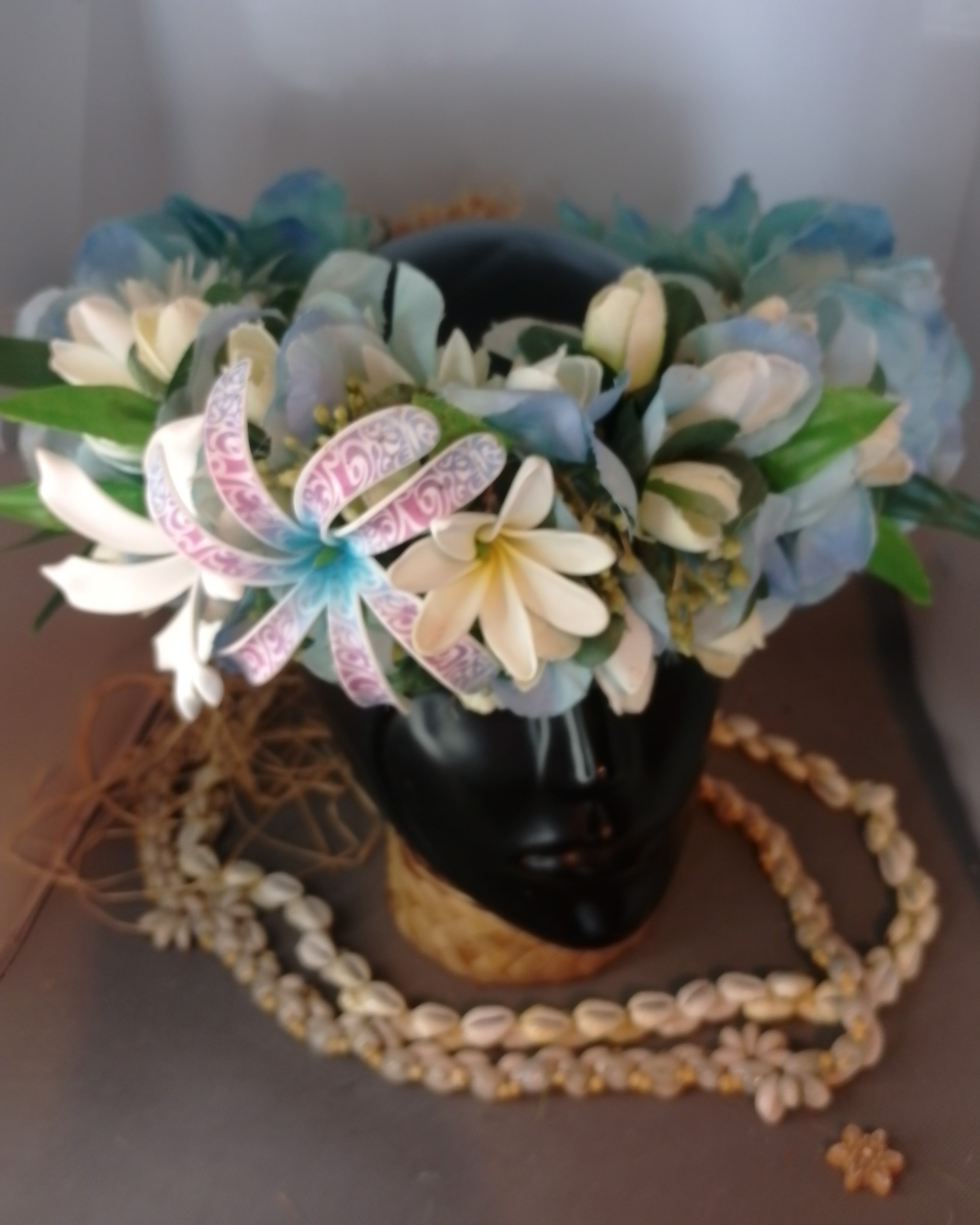 Ainsi composes ta Couronne de tête artisanale fleurs Tahiti artificielles en fonction des produits en stock pour un service rapide.