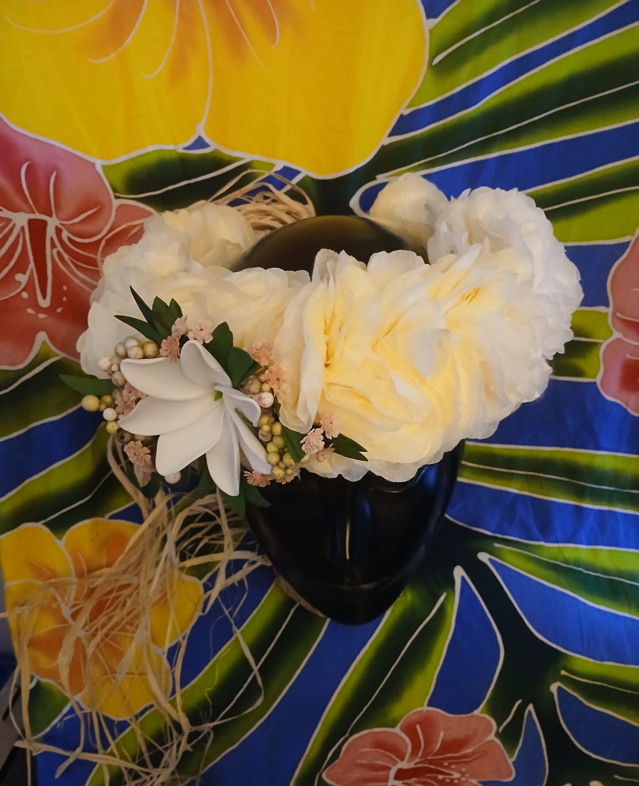 Modèle artisanal unique à floraison permanente de couronne de tête avec fleurs tahitiennes by Vaite.e.Tiare créations