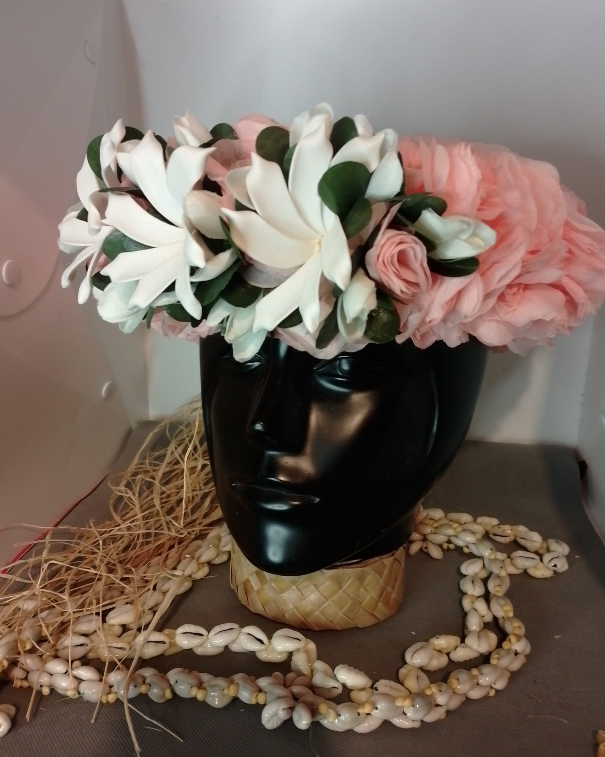 Ainsi composes ta Couronne de tête artisanale fleurs Tahiti artificielles en fonction des produits en stock pour un service rapide.