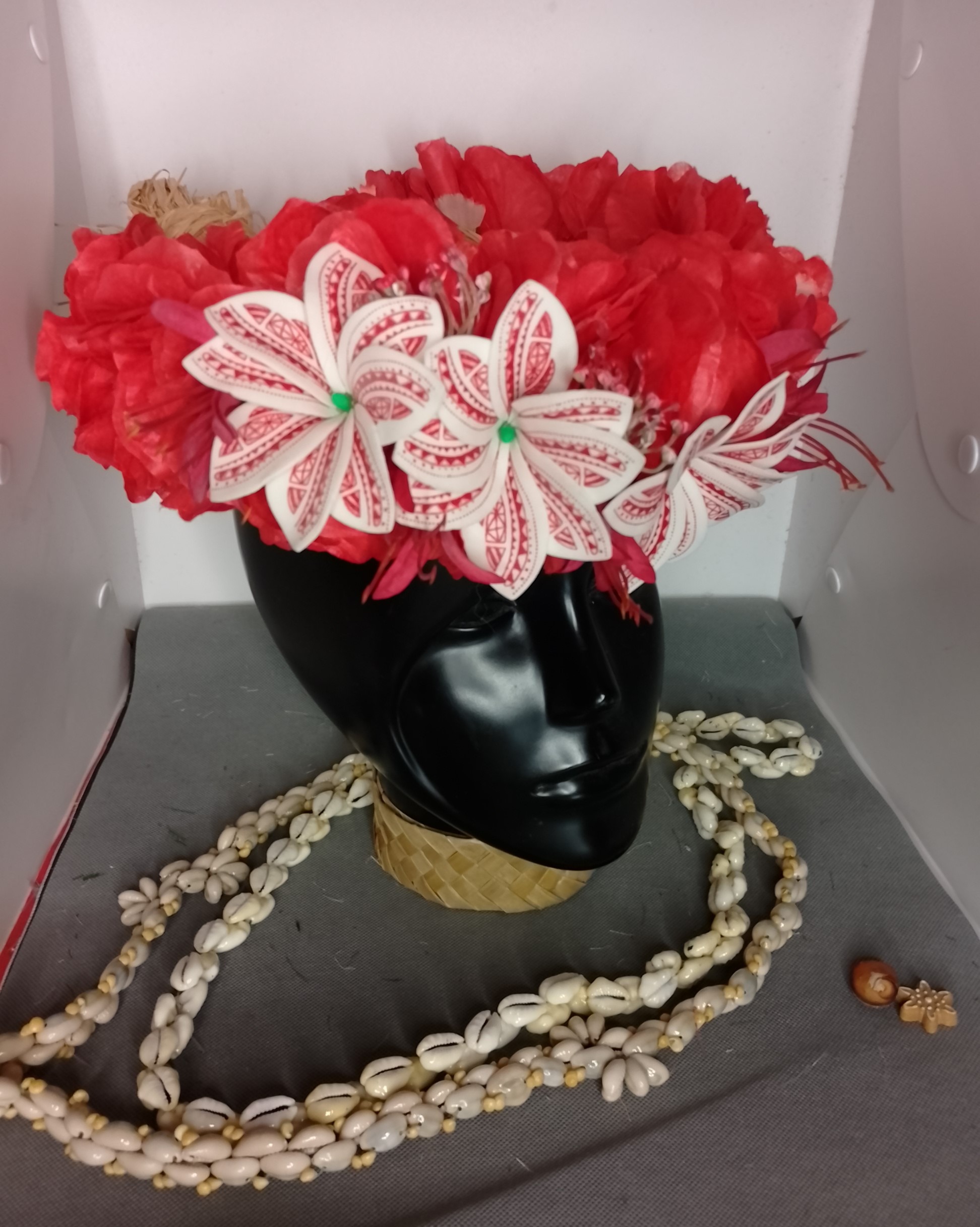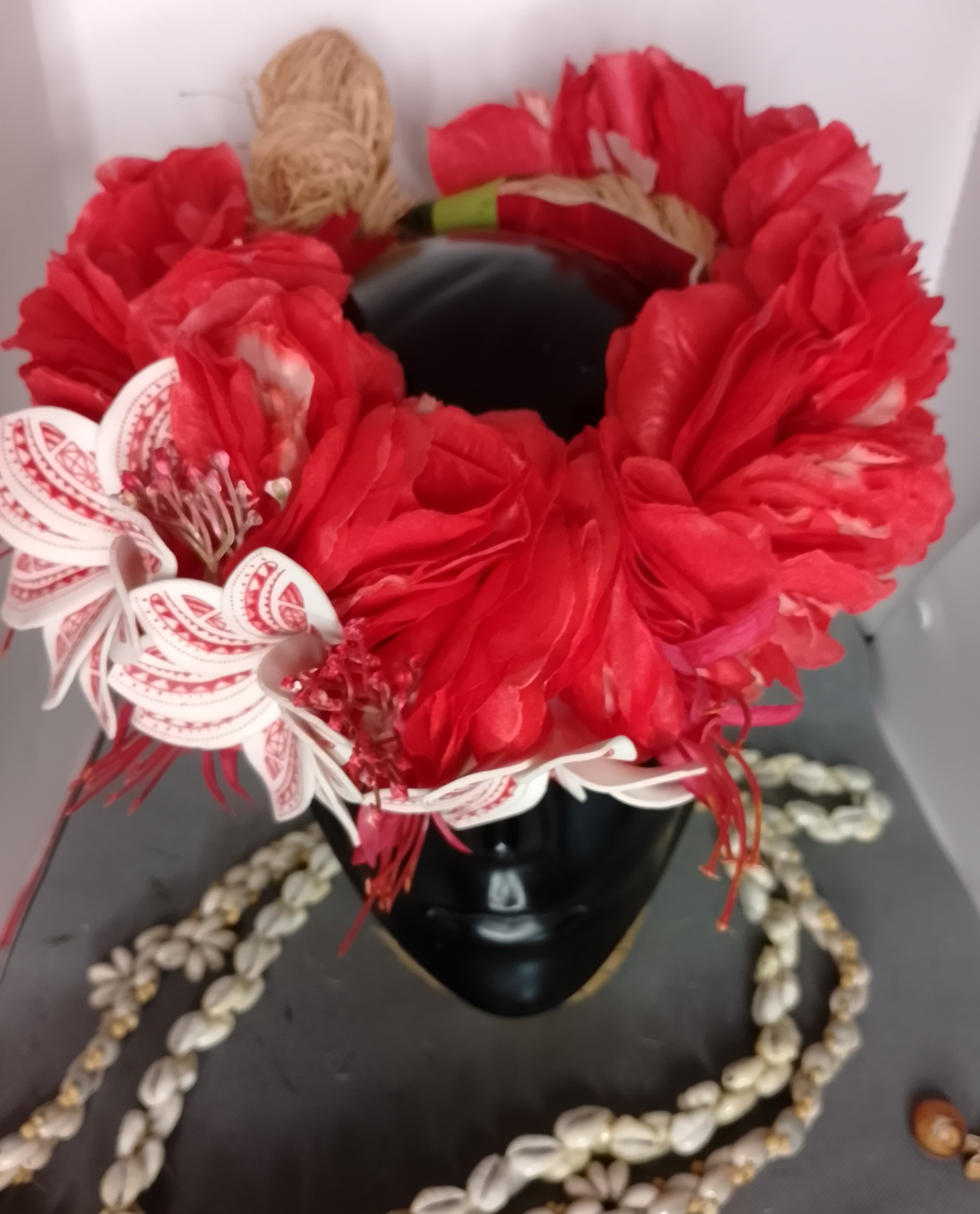 Ainsi composes ta Couronne florale de tête artisanale fleurs Tahiti permanentes en fonction des produits en stock pour un service rapide.