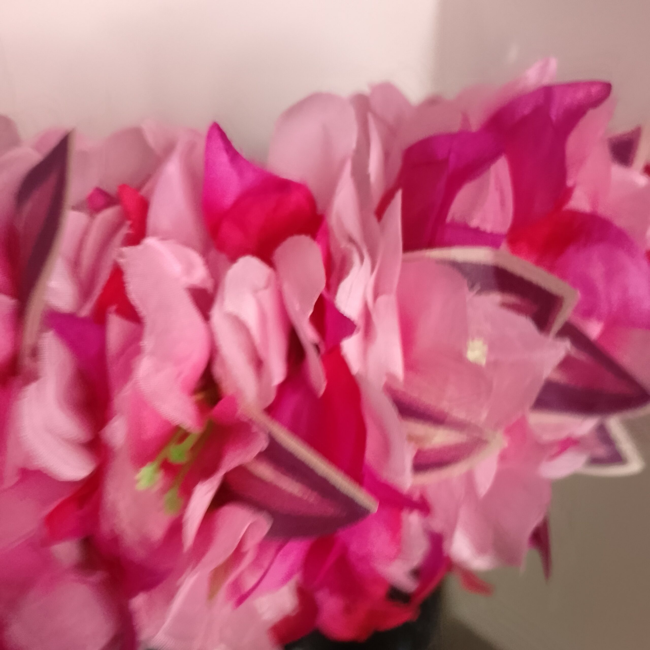 Les brins de bougainvilliers et les feuillages sont en tissu.