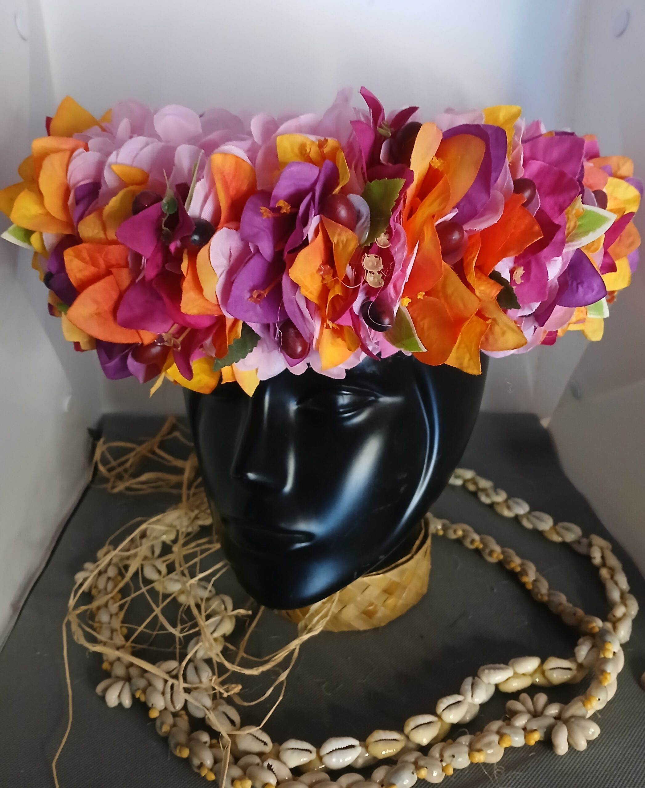 Ainsi composes ta Couronne de tête artisanale fleurs Tahiti artificielles en fonction des produits en stock pour un service rapide.