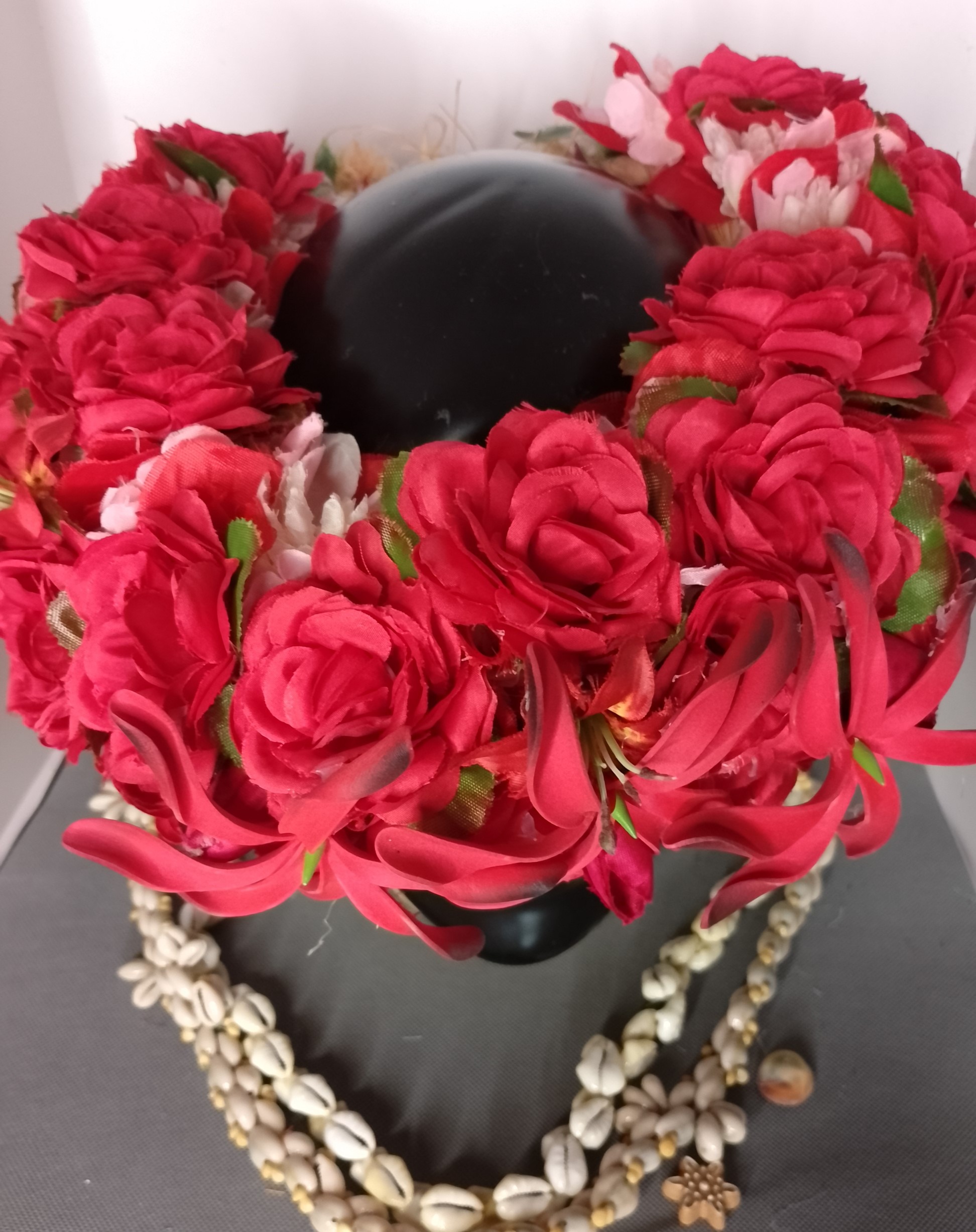 Couronne toute fleur Tahiti rouge corolle de roses rouges trois maxi tiare