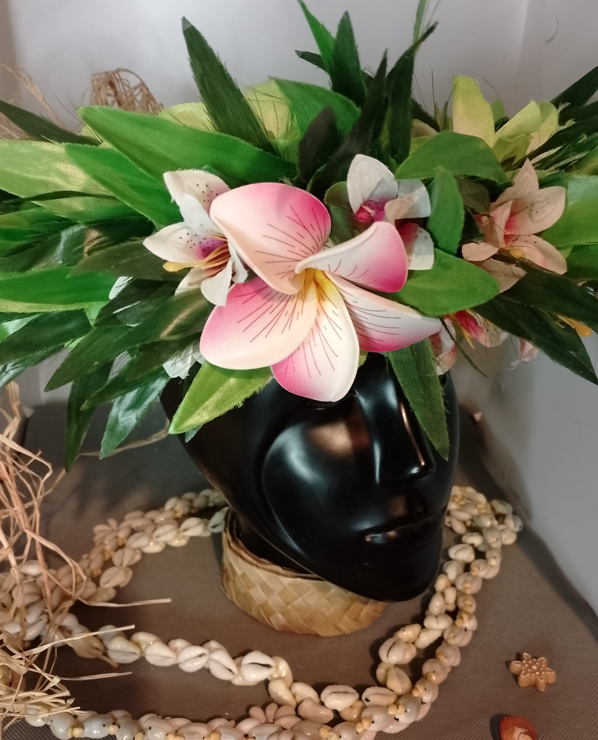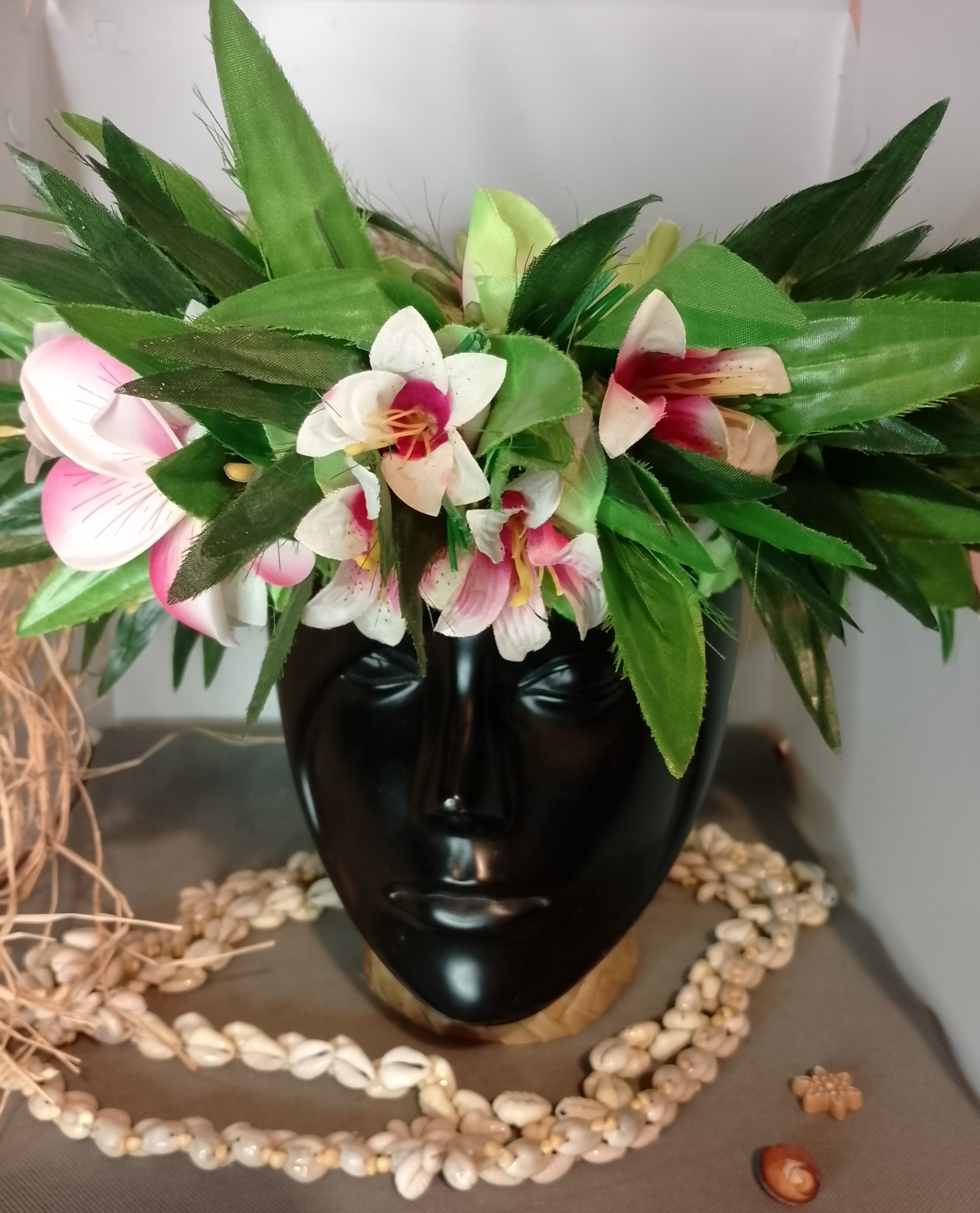 Ainsi composes ta Couronne de tête artisanale fleurs Tahiti artificielles en fonction des produits en stock pour un service rapide.