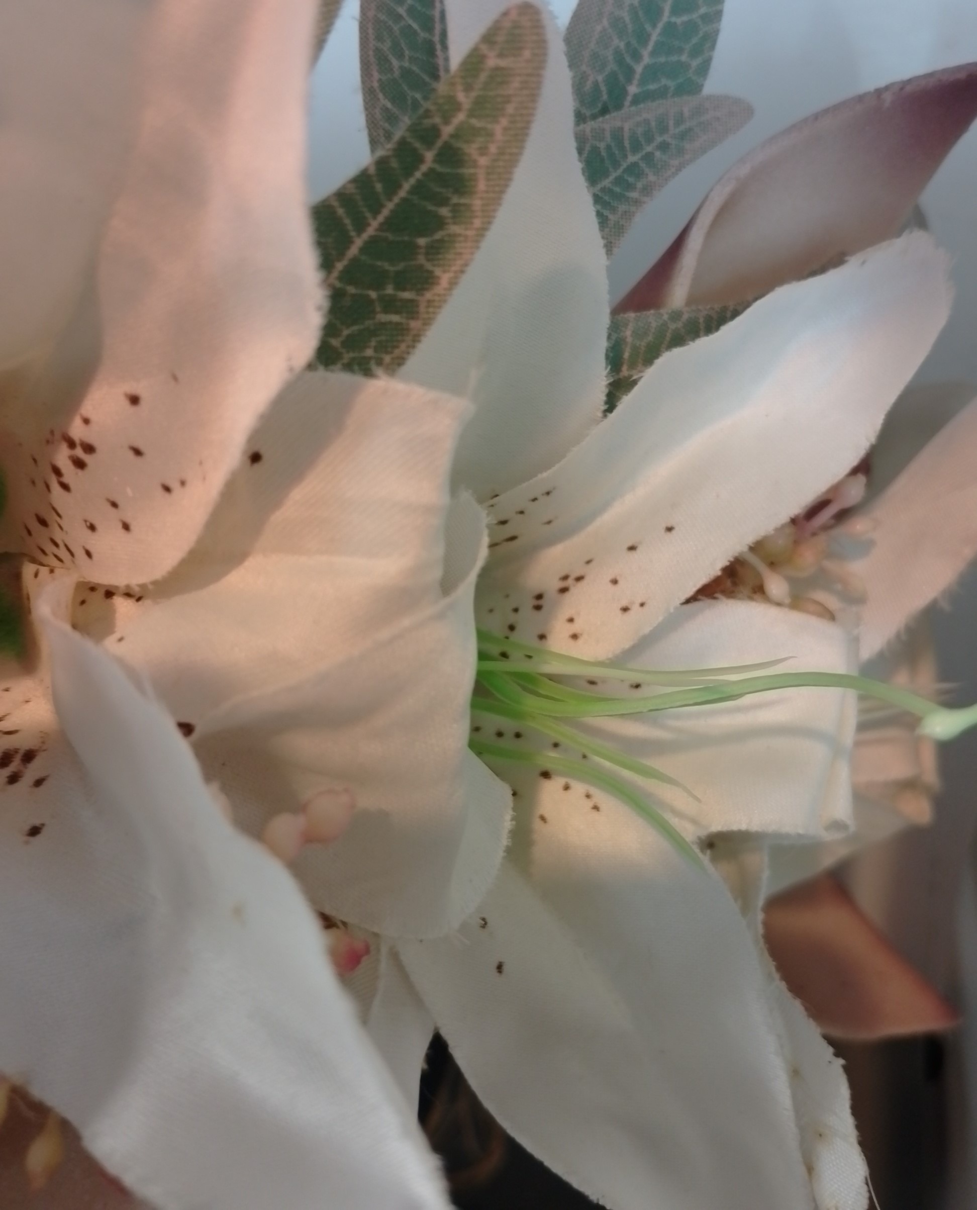 Les feuilles, les grands lys sont en tissu.