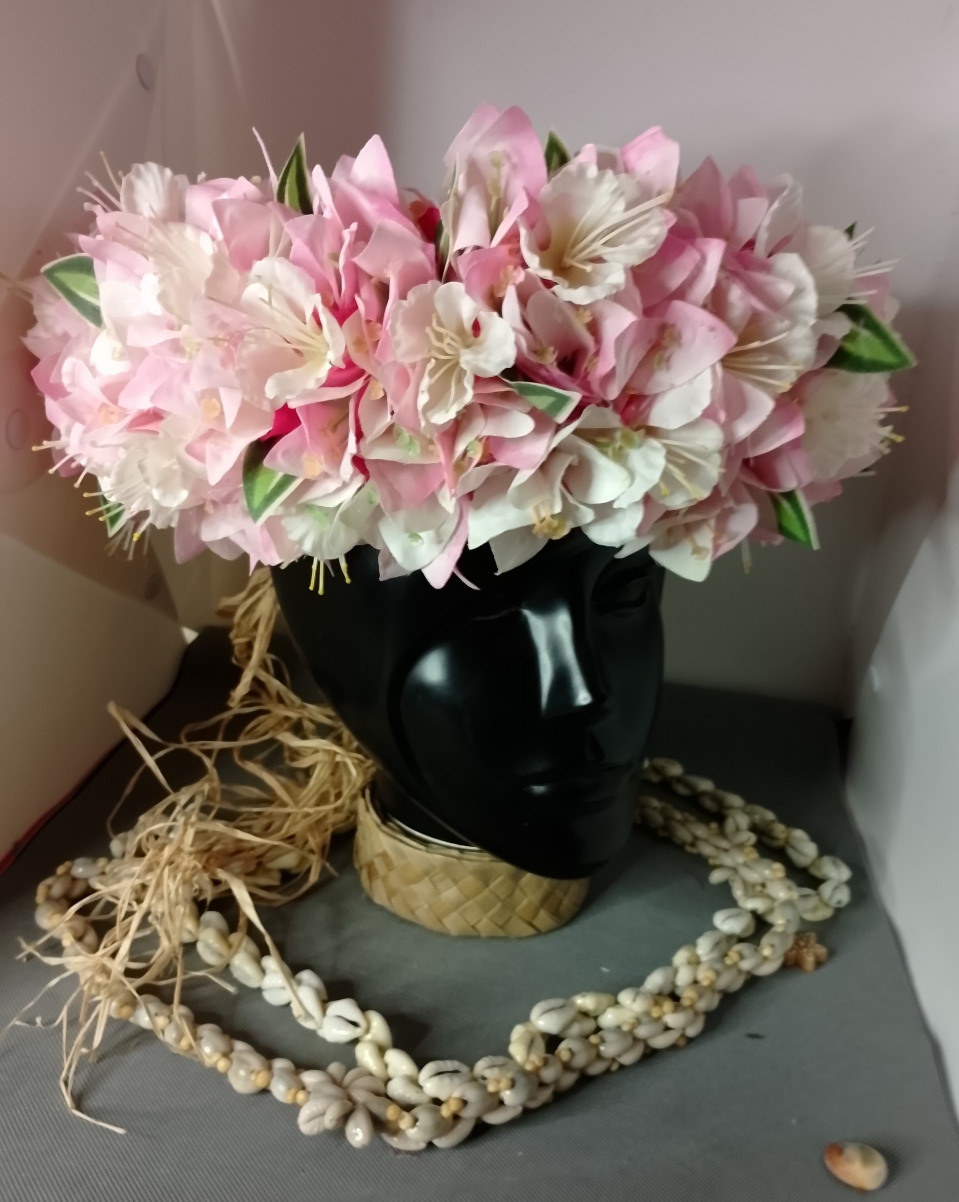 Ainsi composes ta Couronne de tête artisanale fleurs Tahiti artificielles en fonction des produits en stock pour un service rapide.