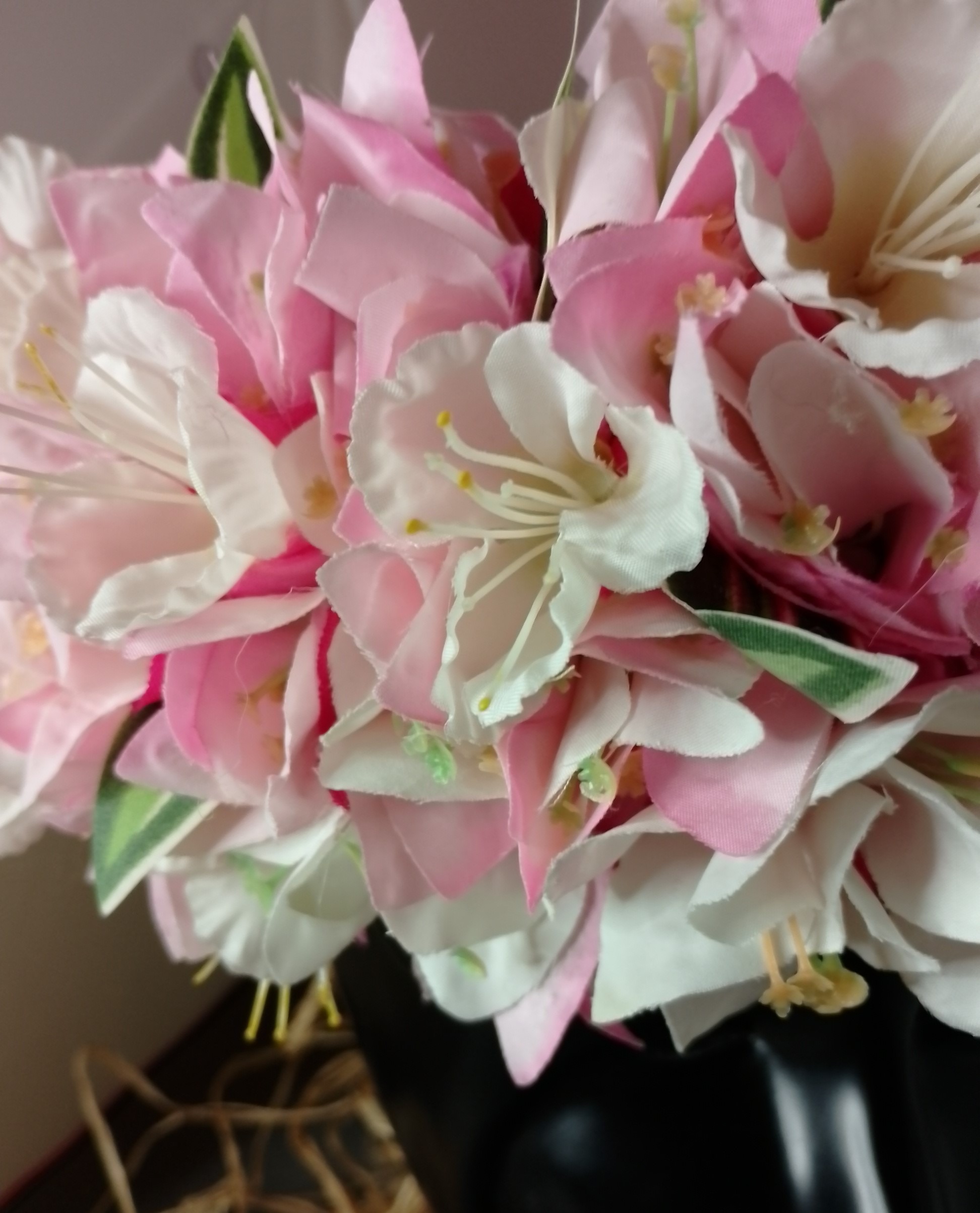 Les feuilles, les brins de bougainvilliers et de flamboyant sont en tissu.