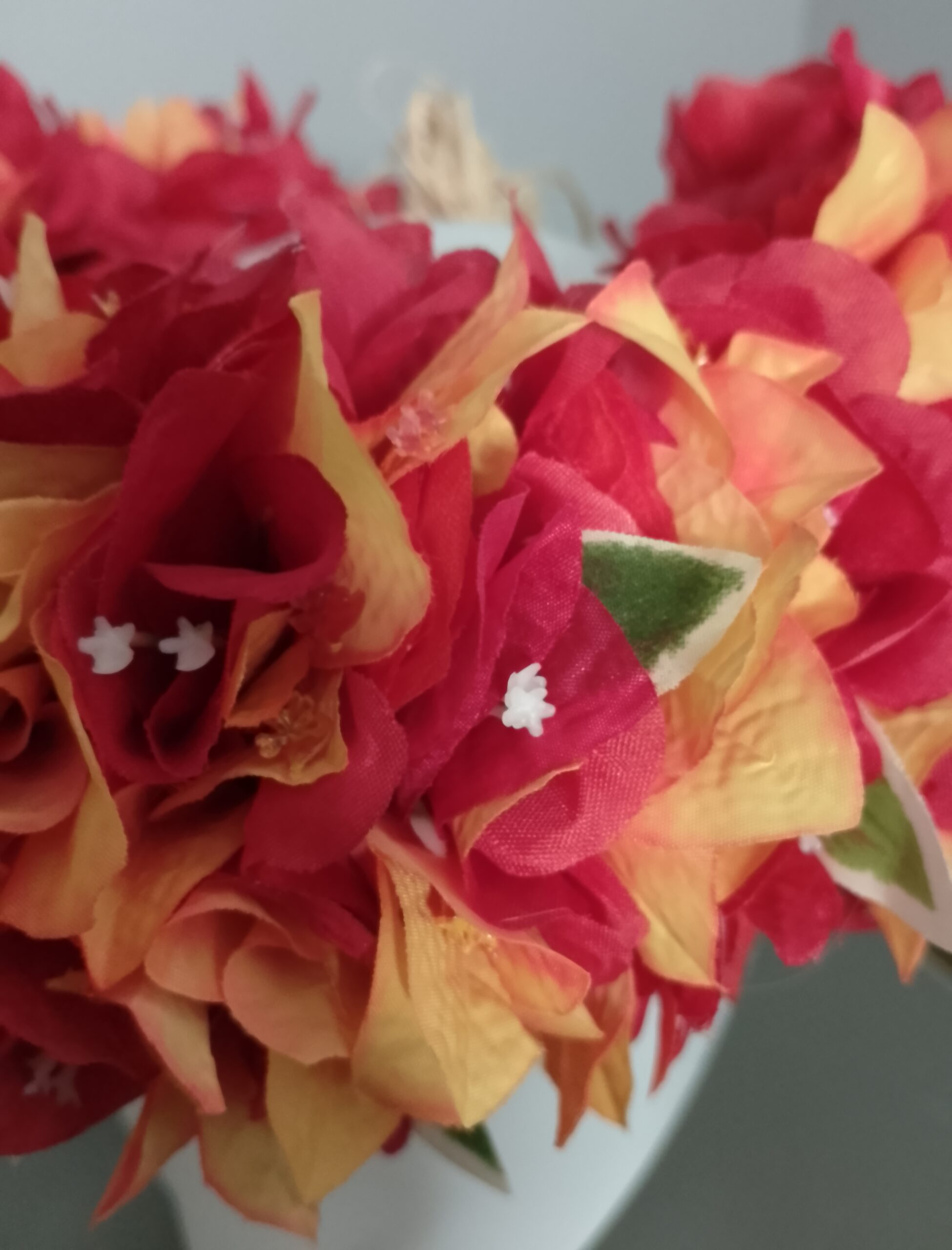 Les composants de la Couronne toutes fleurs Tahiti rouge bougainvillier rouge et orange flamboyant sont pour