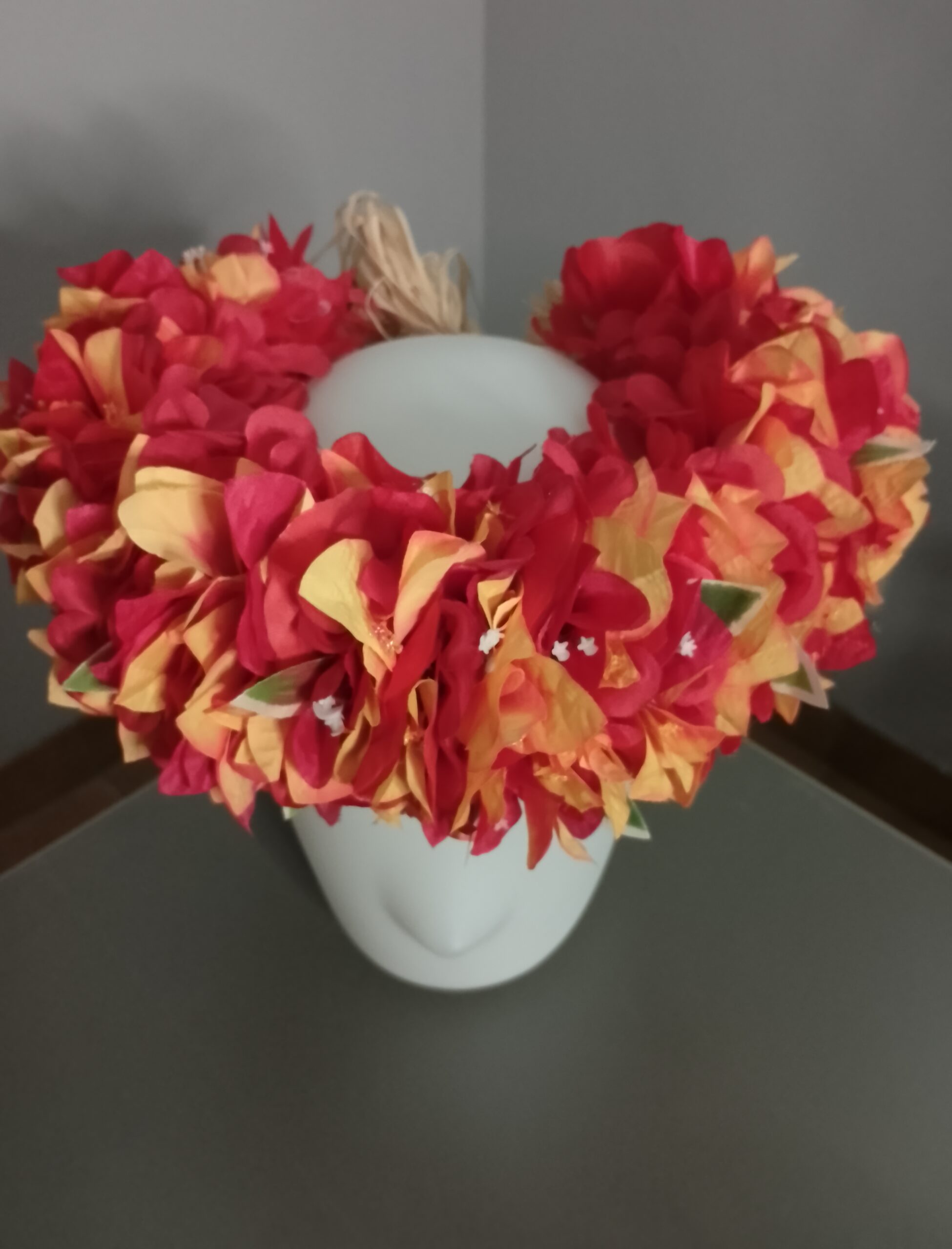 Couronne toutes fleurs Tahiti rouge bougainvillier rouge et orange flamboyant