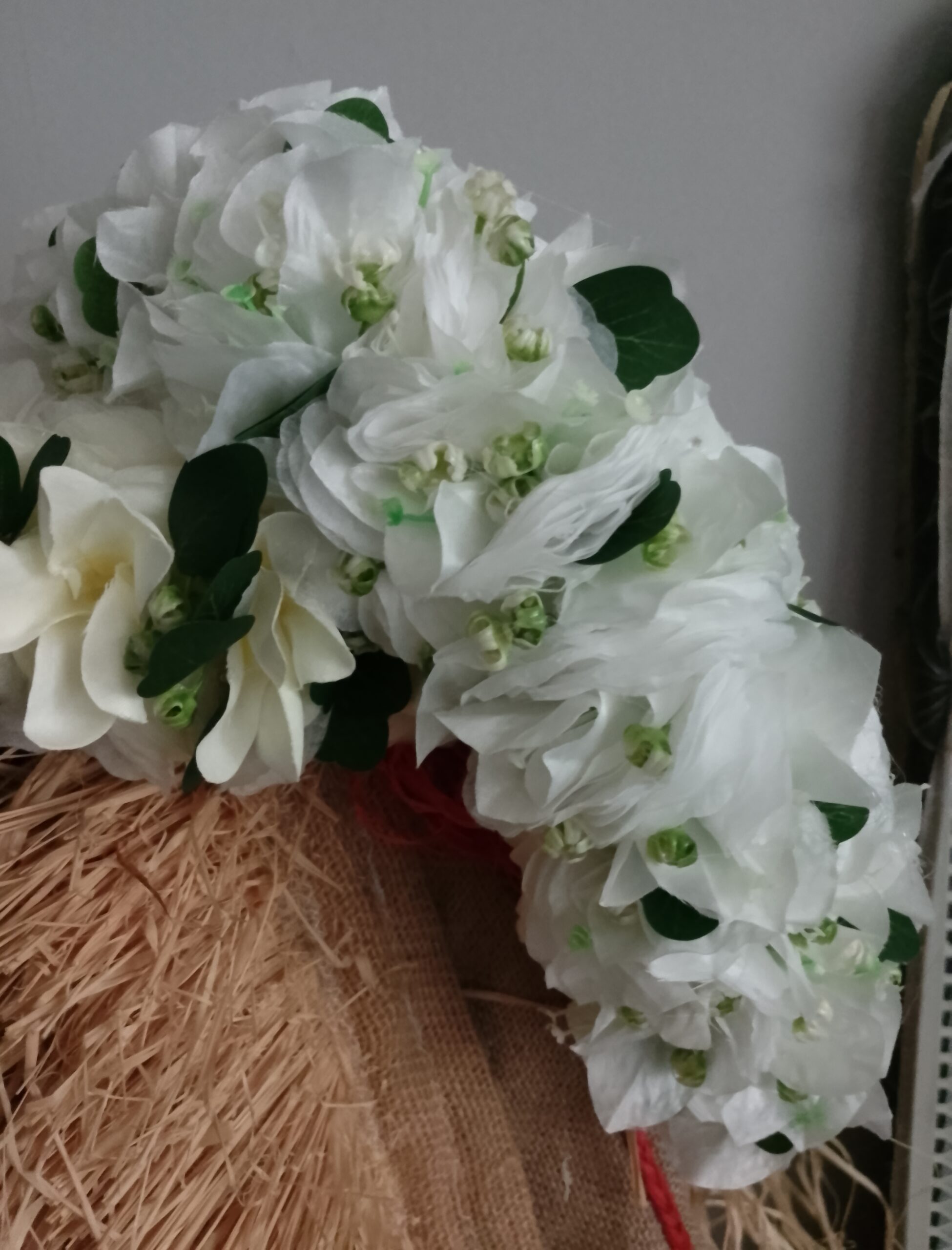 Artisane créatrice, je peux confectionner spécialement pour toi un modèle de couronne de fleurs personnalisée.